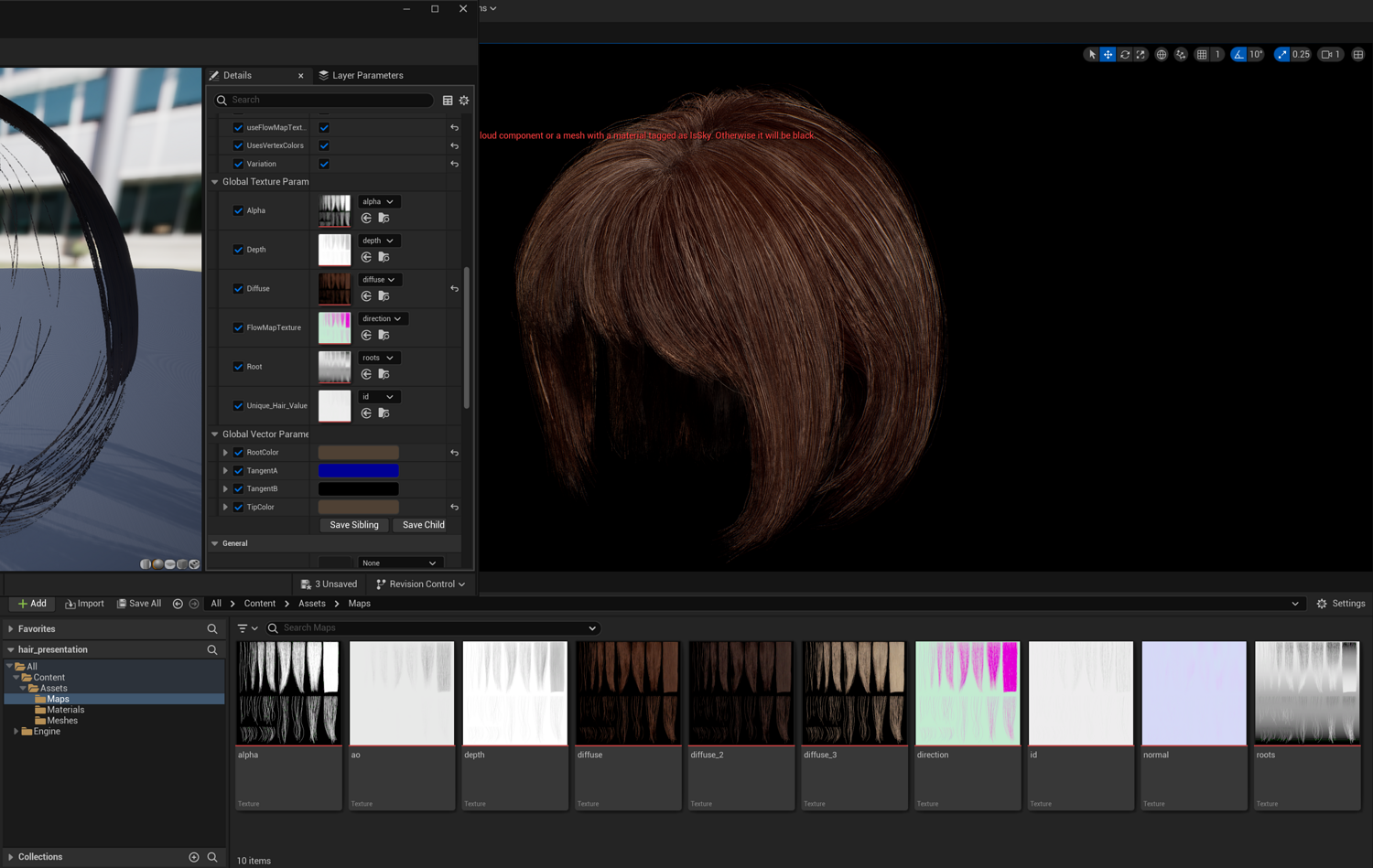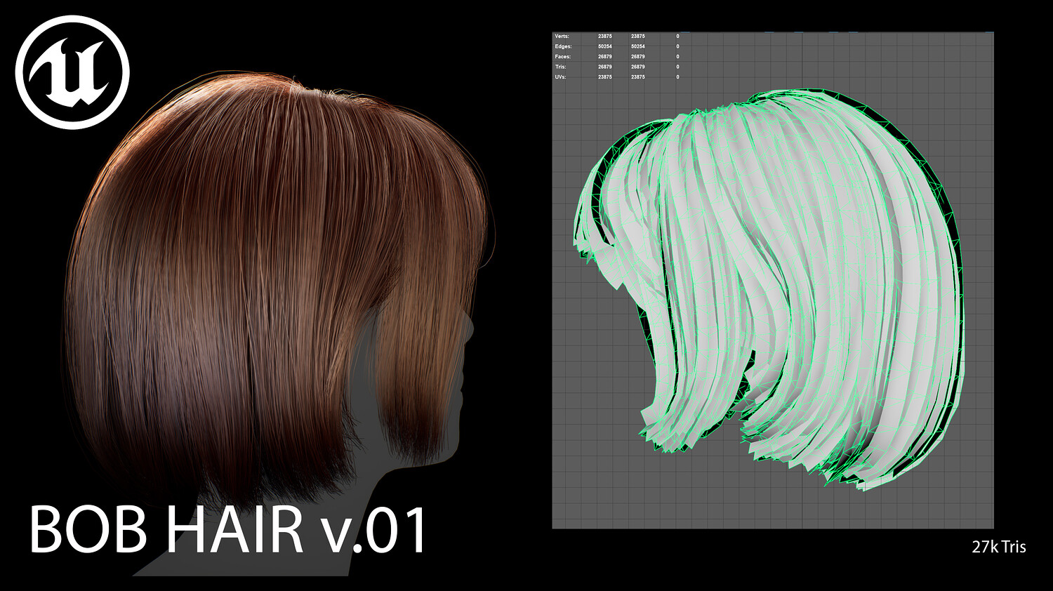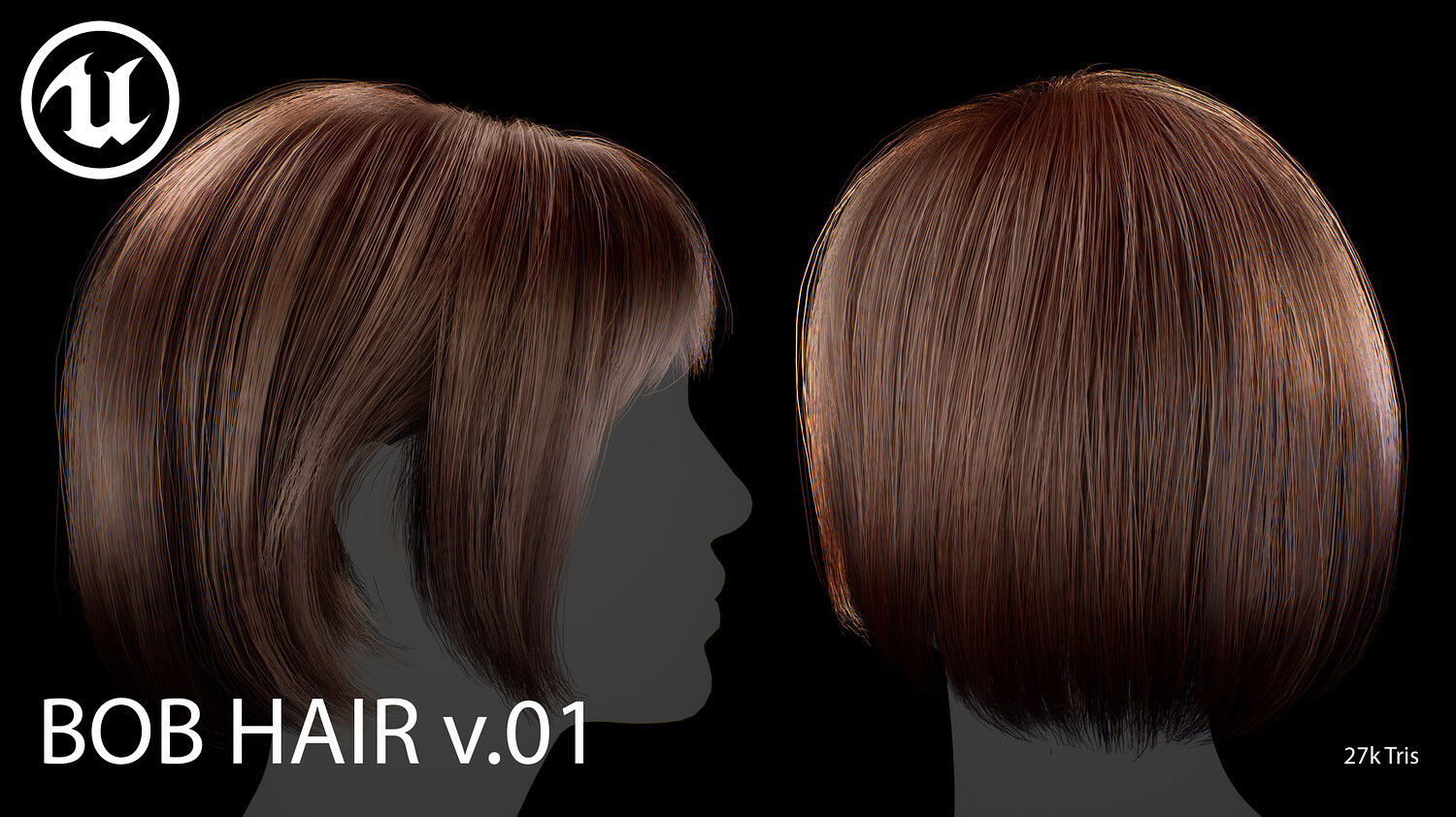 This elegant real-time female Bob hairstyle is designed for use in games, cinematics, and real-time applications. Hair textures created with XGen (textures were made and baked using xGen and Arnold) and optimized for Unreal Engine 4-5, this asset delivers both performance and high visual quality.