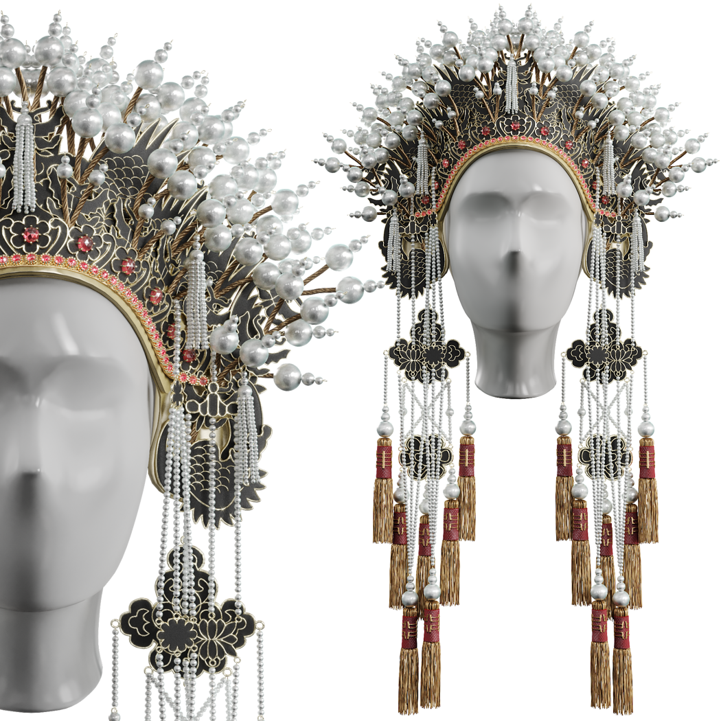 This highly detailed ornamental crown is inspired by traditional Qing Dynasty headwear. Featuring realistic pearls, golden branches, tassels, and floral inlays, this model is a showpiece for any high-end render project. Ideal for close-ups, promo scenes, or hero assets.