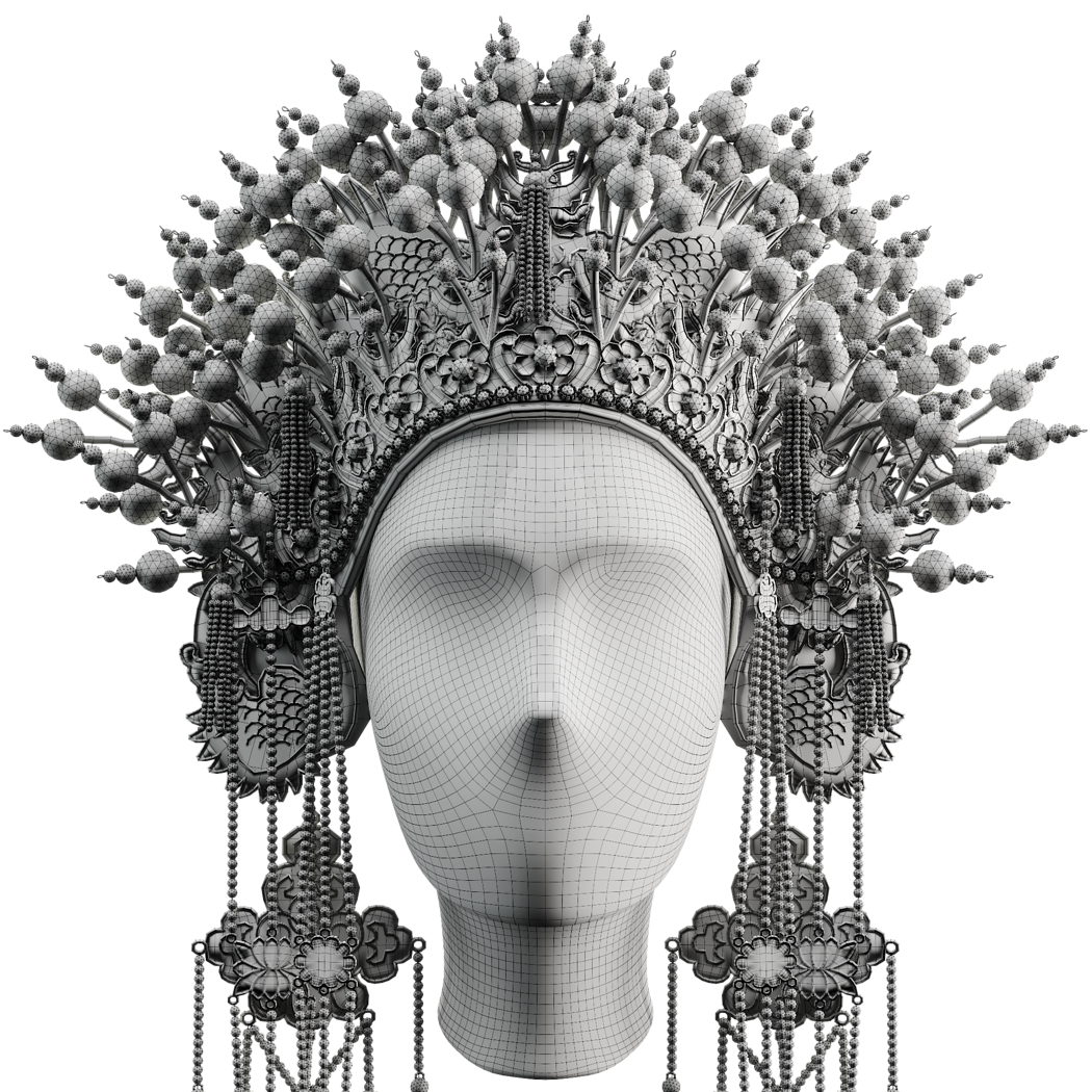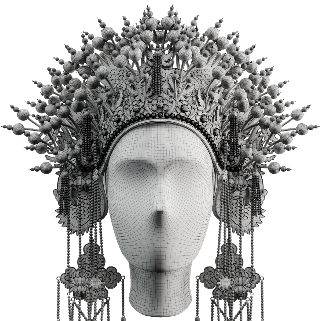 High-Quality 3D Model of an Imperial Chinese Headdress, perfect for cinematic visualizations, character concept design, cultural artworks, and fantasy illustrations.