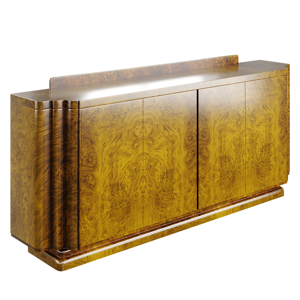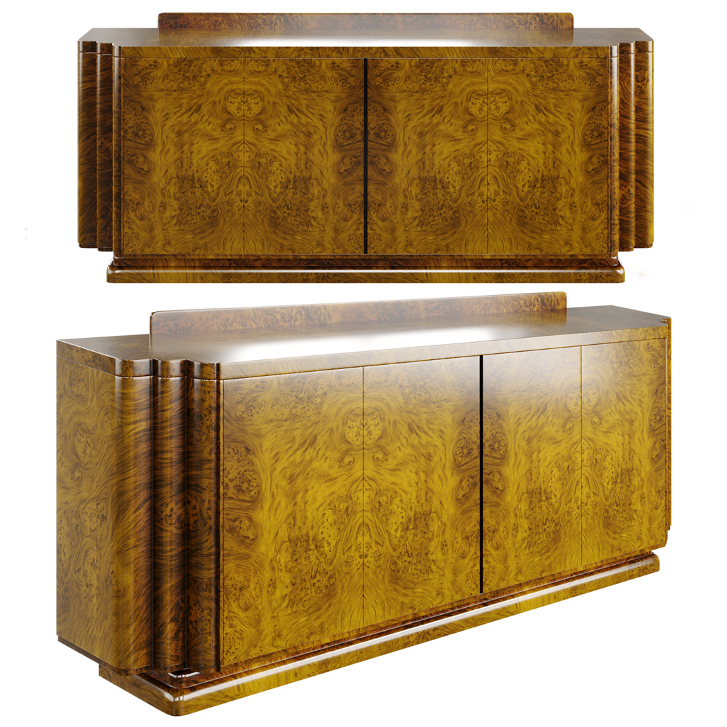High-quality Art Deco sideboard created with detailed burl wood veneer and clean optimized geometry. Perfect for interior scenes, architectural visualization, product renders, and high-end furniture environments.