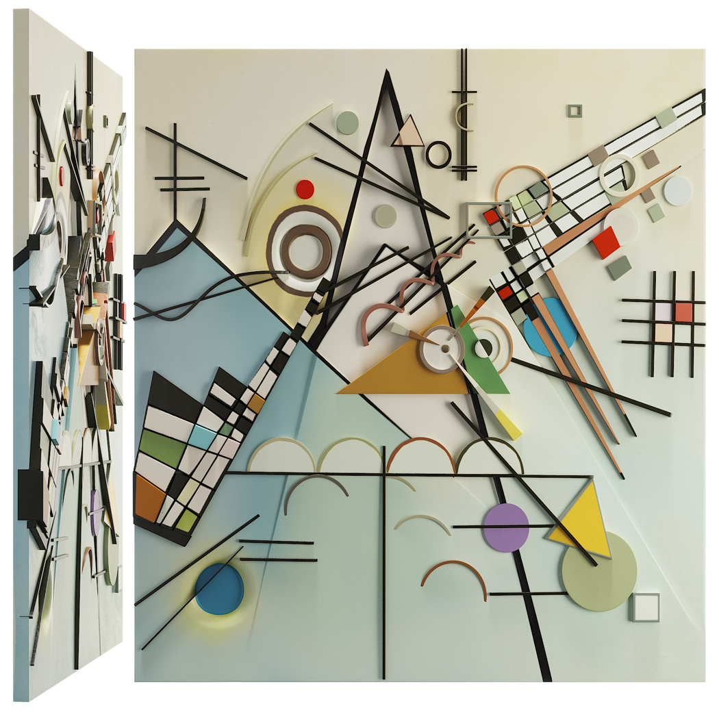 kandinsky, abstract, relief, wallpanel, basrelief, geometric, art, sculpture, interior, architectural, 3dmodel, highdetail, 3dprint, cnc, modern, design, shapes, composition, 3dsmax, stl