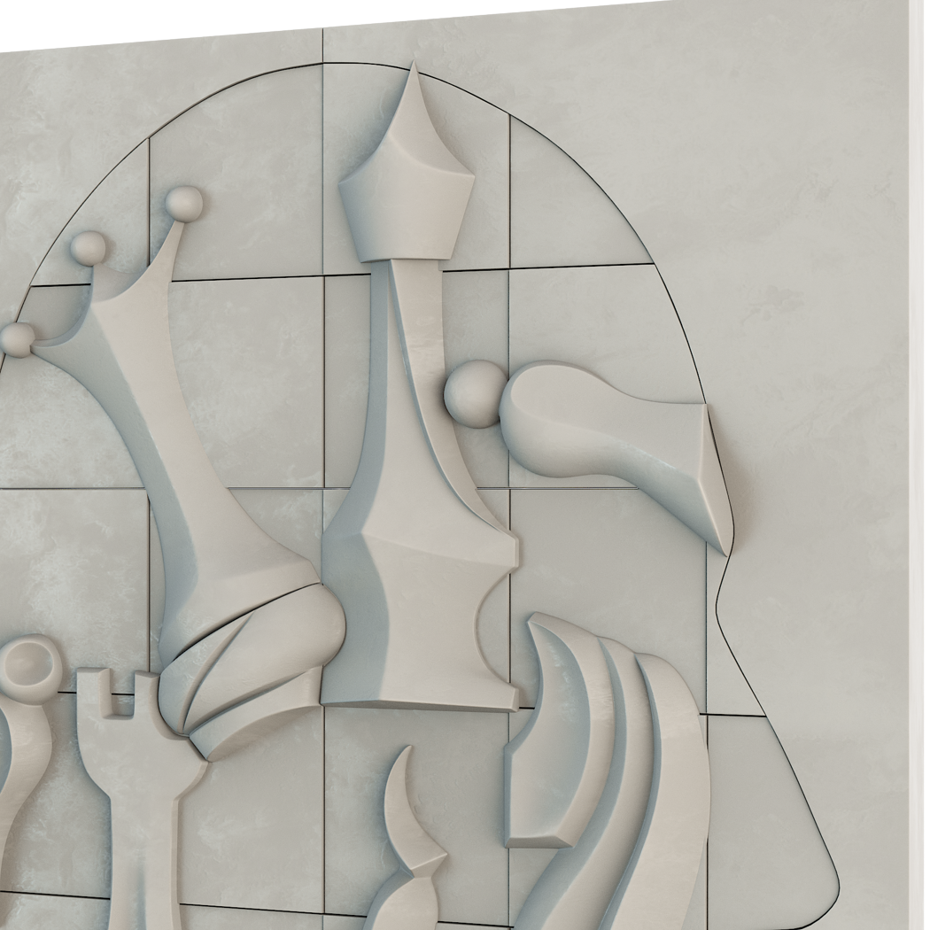 Perfect for wall decoration, furniture inserts, and artistic production. chess, chess art, chess decor, chess panel, chess pieces, cnc, cnc model, cnc relief, carving, engraving, bas relief, wall art, wall panel, decorative panel, abstract, geometric, sculpture, interior, game room, furniture decor