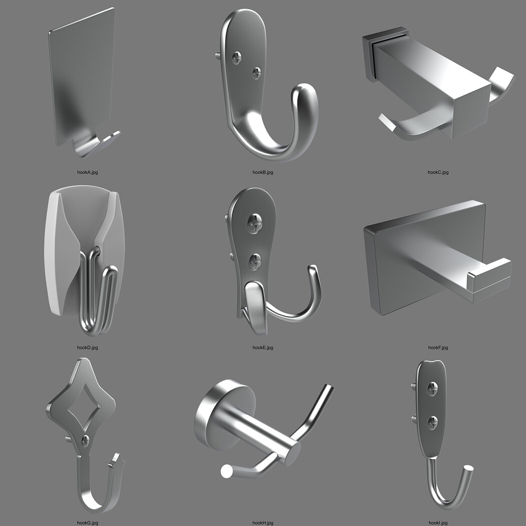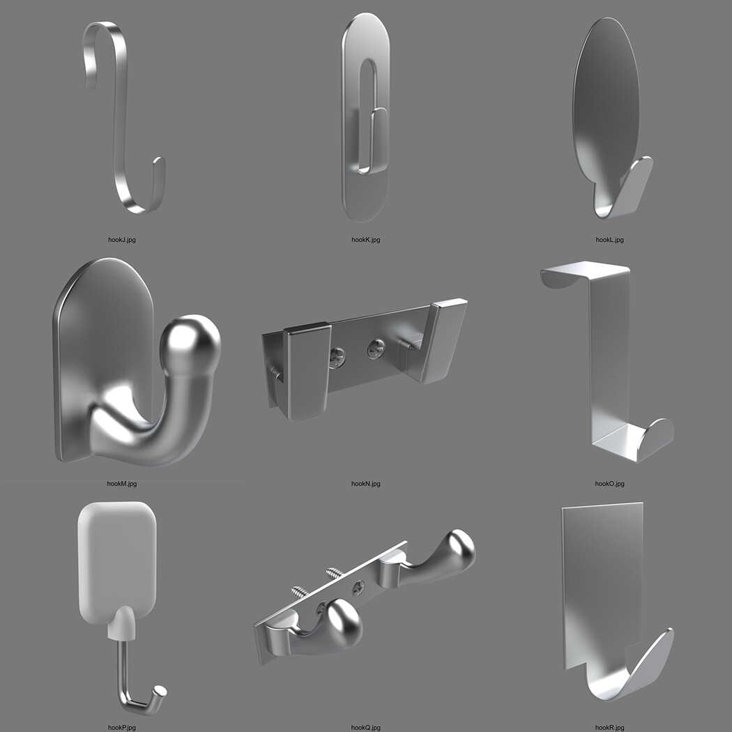 Hook Models Asset pack - Total 18 Models, ready to be used in Games, 3DPrint and Films