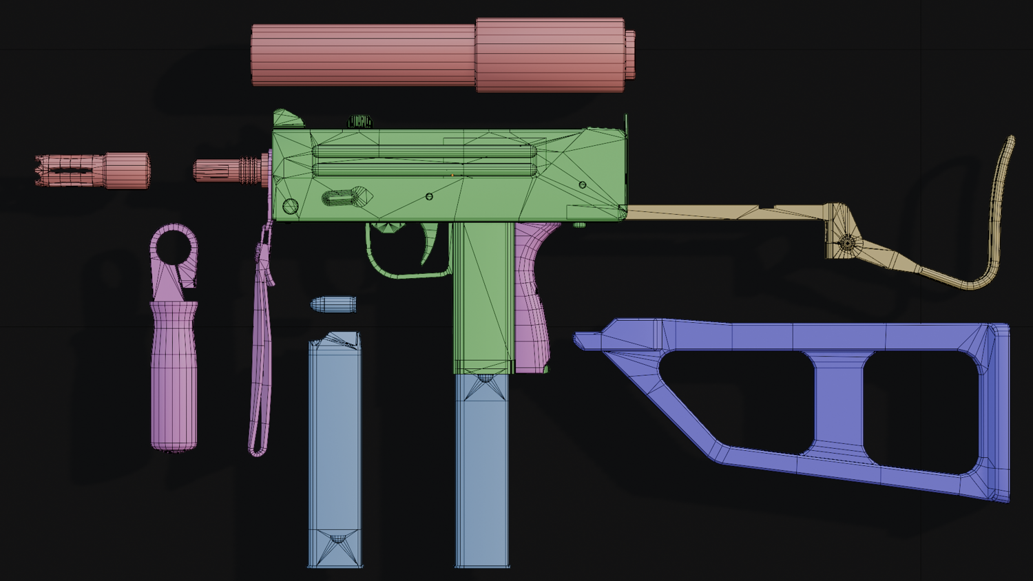 A Mac 11 smg base mesh with different attachments. Ready for your textures. Game-ready lowpoly and highpoly meshes are provided.
