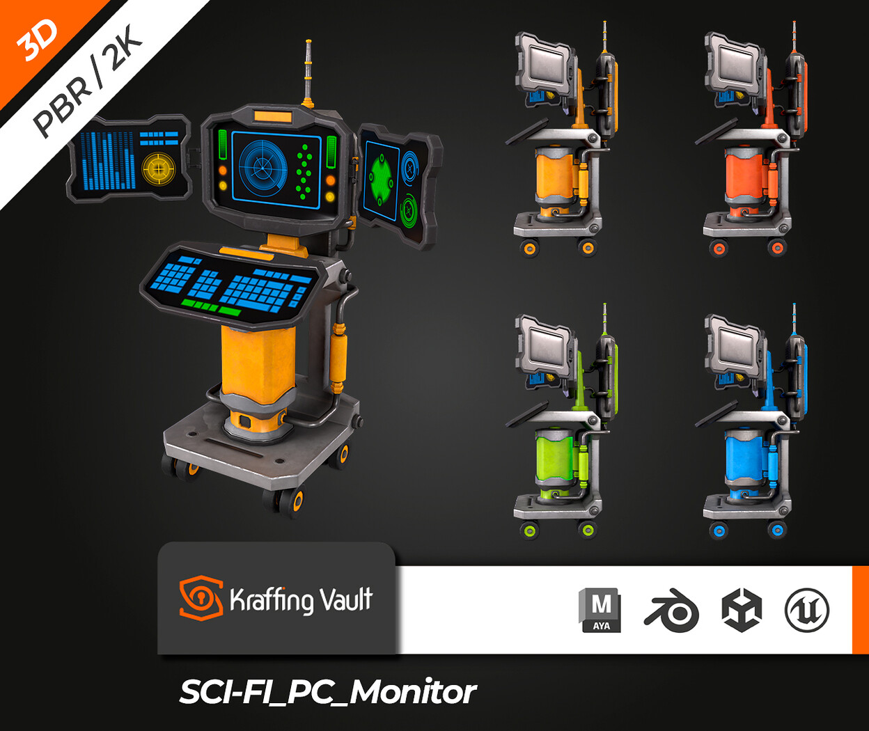 3D SCI-FI PC Monitor V2 modeling optimized and ready for your personal projects, references and more.
