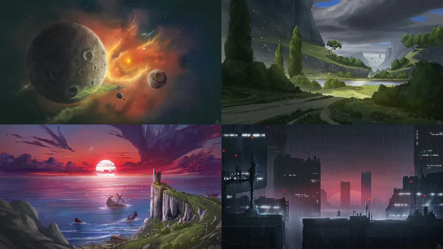 A Lone Warrior ver.2024, A Moon of Many, A Pile of Stones, After Collapse, Alpine Escarpment, Another World, Arrival of the Witcher, Arrivals, Basking Astrocat, Black Hole Orbit, City Angle, Cottage by the Lake, Dangerous Place, Dead Peak, Deep Mountain Pass, Dracula's Territory, Dragon Valley, Dragon Waterfall, Dragons Lair, Foggy Forest, Forsaken Castle, Full Moon Path, Green Roofs, Grim's Cemetery ver.2024, Happy New Year 2025, Highland Region, Inside Mount Doom, Jumping Over, Midninght Race Continues, Mountain Trip, Needles, Never Forgotten Lightsaber, Old Ruins in Desert, One of Those Days, Perseverance, Pinball Memories, Ridge Base, River Ford, Ruins of Old Lighthouse, Simple Lights, Sky View, Snowstorm ver.2024, Spiders and the Witcher, Spinner Latitude, Sunset Horizons, Tiny Bay Island, Under Cliffs, Visitors from Valinor, Volcano Island, Waterfall Cabin and Witcher's Curiosity.