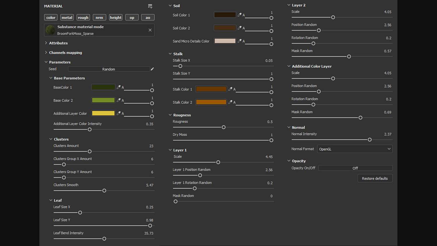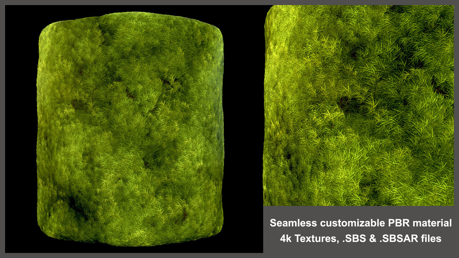 Broom Fork Moss Sparse Version PBR Material was created in Substance Designer 14.1.2.