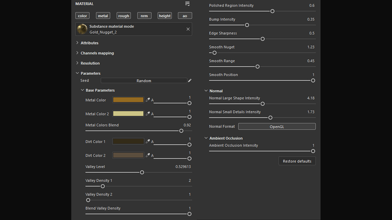 Gold Nugget Customizable Substance Material was created in Substance Designer 14.1.2.