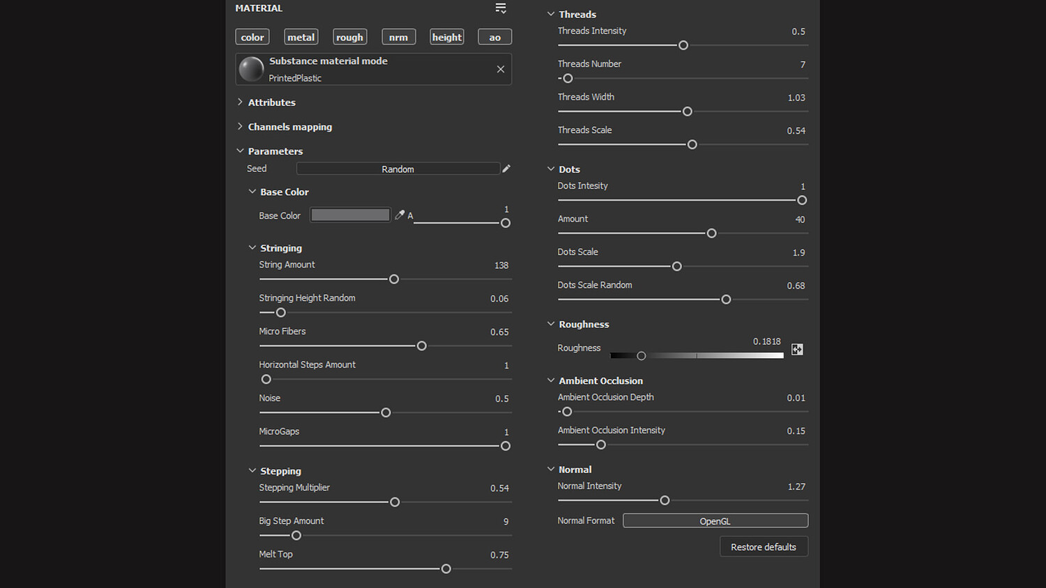 textures #miscellaneous #plastic #printed #surface #substance #polymer #layered #3d#fdm #stepped #printline #print #imperfections #customizable #figure #pbr #material #substance #sbs #sbsar #procedural #Customizable #seamless