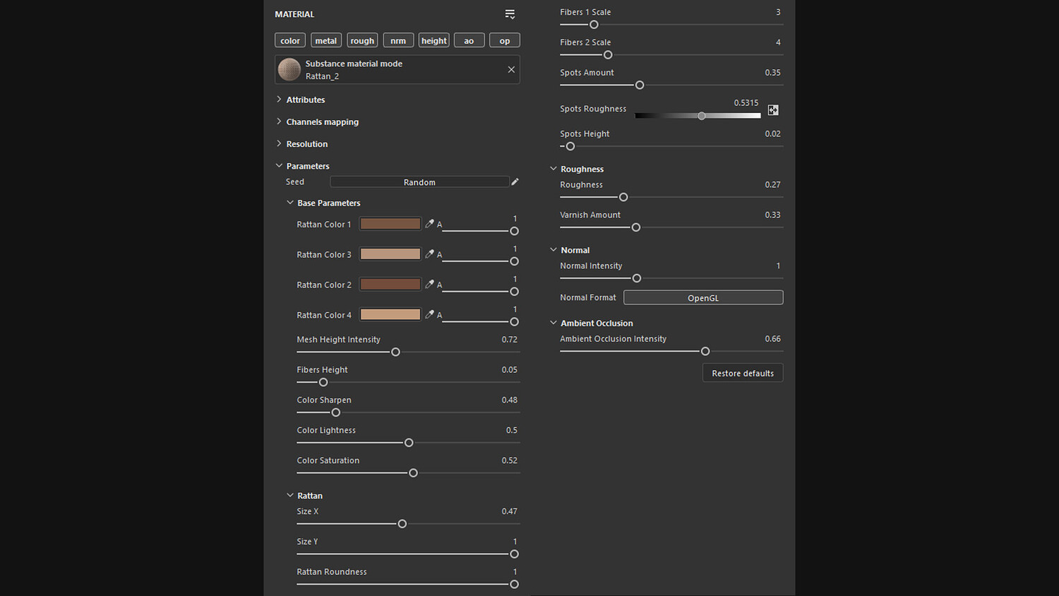 Rattan Customizable Substance Material was created in Substance Designer 14.1.2.
