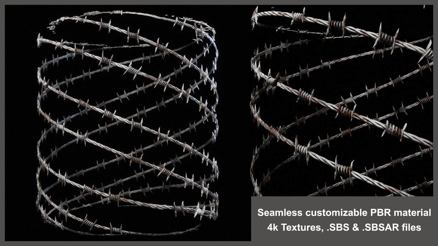 pbr #wire #textures #low #barbed #material #seamless #fence #steel #defence #fencing #zone #realistic #razor #flat #prison #border #spikes #substance #metal #architectural #substance #sbs #sbsar #procedural #customizable #seamless