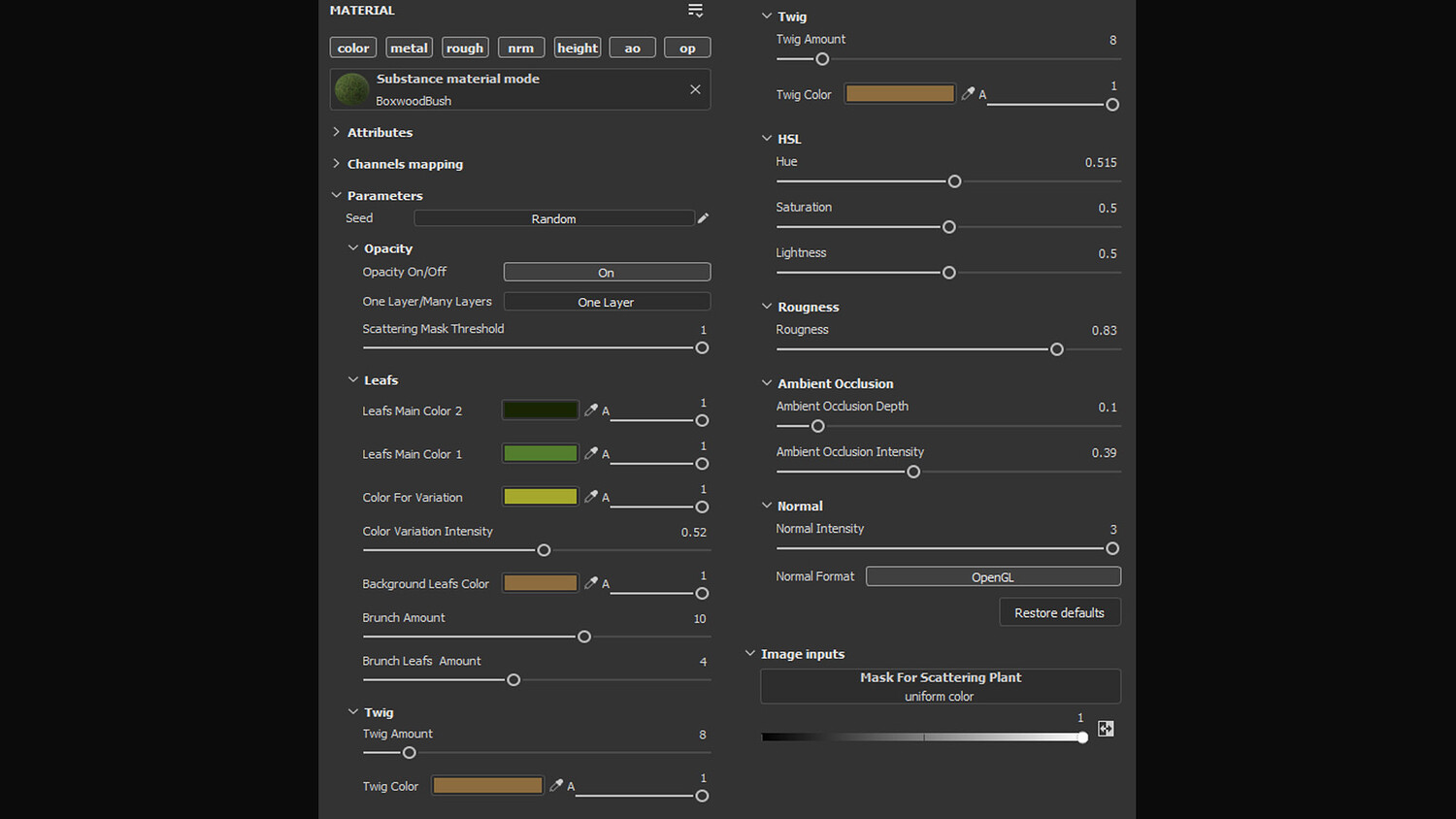 Stylized Bush customizable Substance PBR material and textures SBS & SBSAR