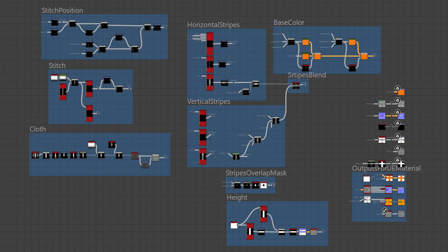 Seamless PBR material of the cargo net was created in Substance Designer 14.1.2