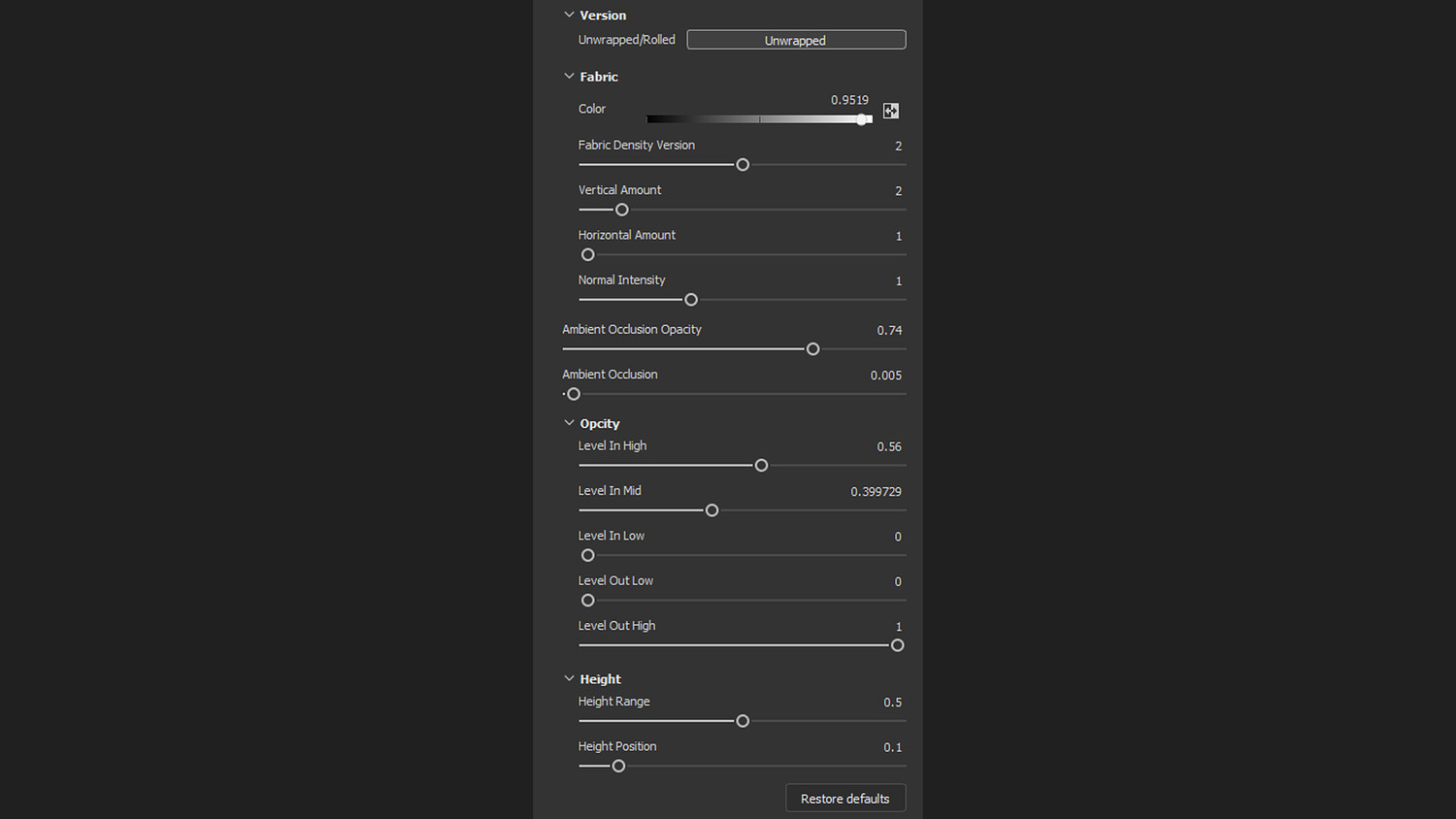-In the .sbsar file (PBR material for Substance Painter) you can configure some parameters.
