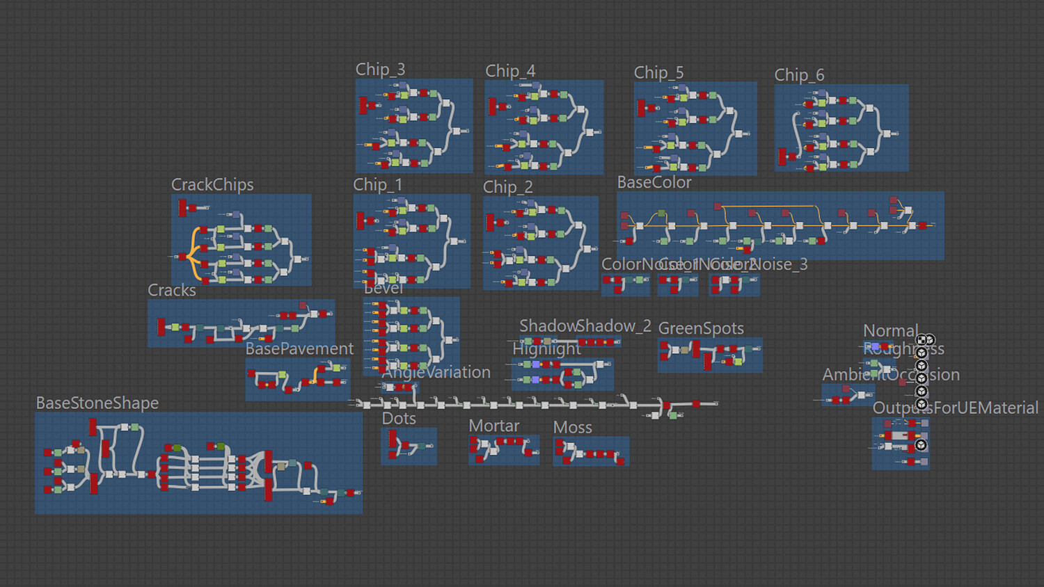 Seamless stylized pavement PBR material was created in Substance Designer 14.1.2