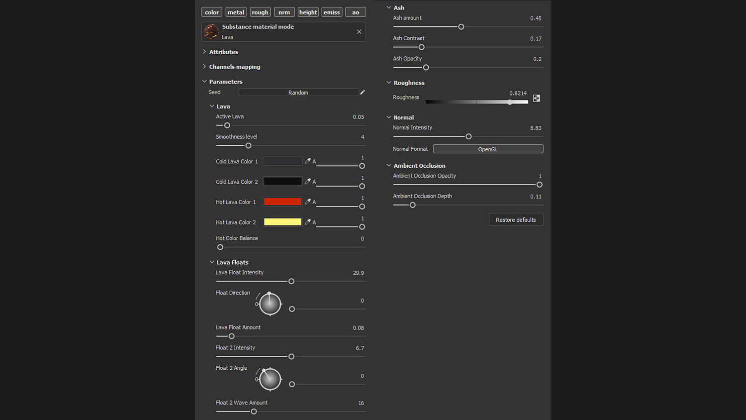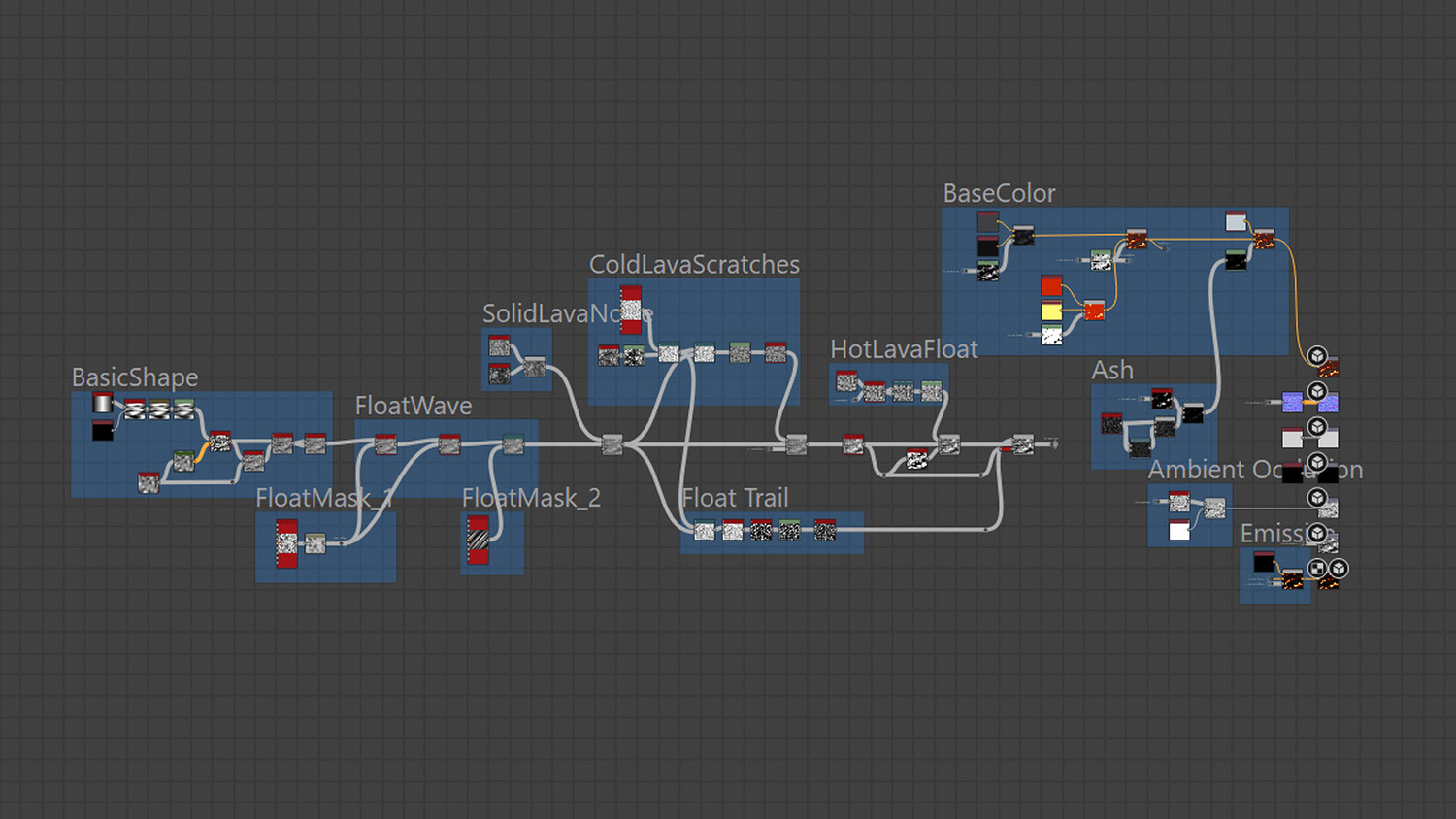 Seamless lava PBR material was created in Substance Designer 14.1.2