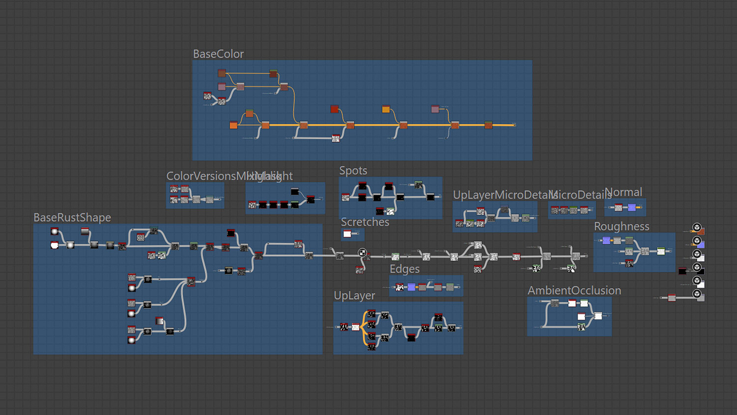 Stylized rust metal material was created in Substance Designer 14.1.2.