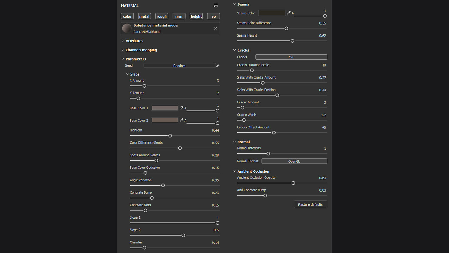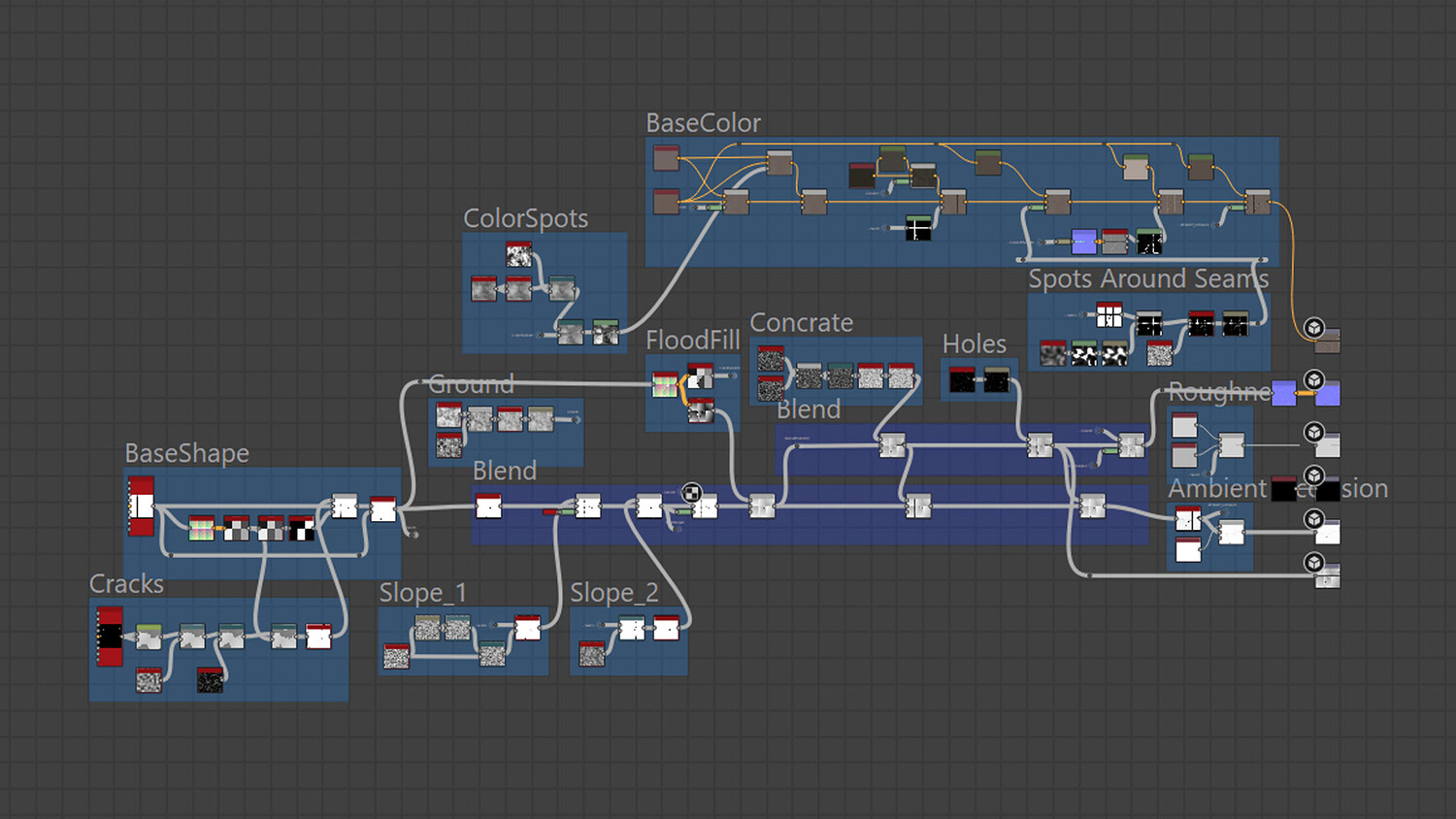 Seamless stylized slab road PBR material was created in Substance Designer 14.1.1