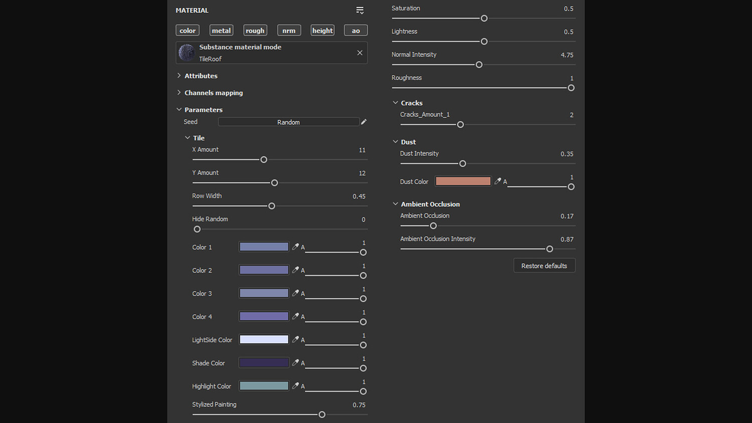 The .sbs and .sbsar file (PBR material for Substance Painter) In the .sbsar file you can change:
