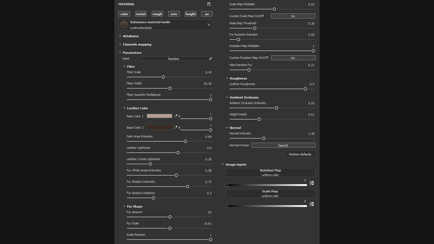 Seamless Leather Flesh Side PBR Material was created in Substance Designer 14.1.2.