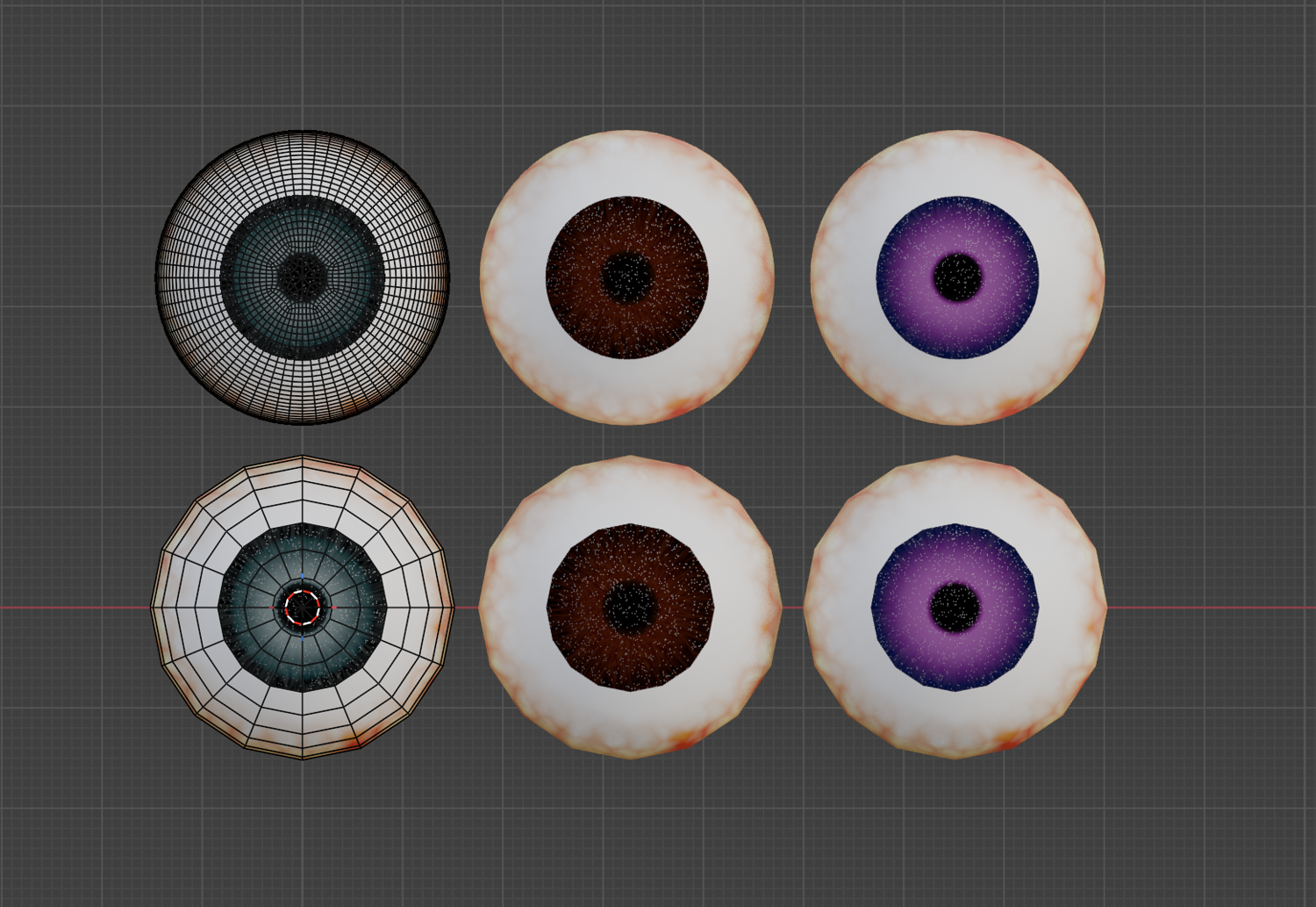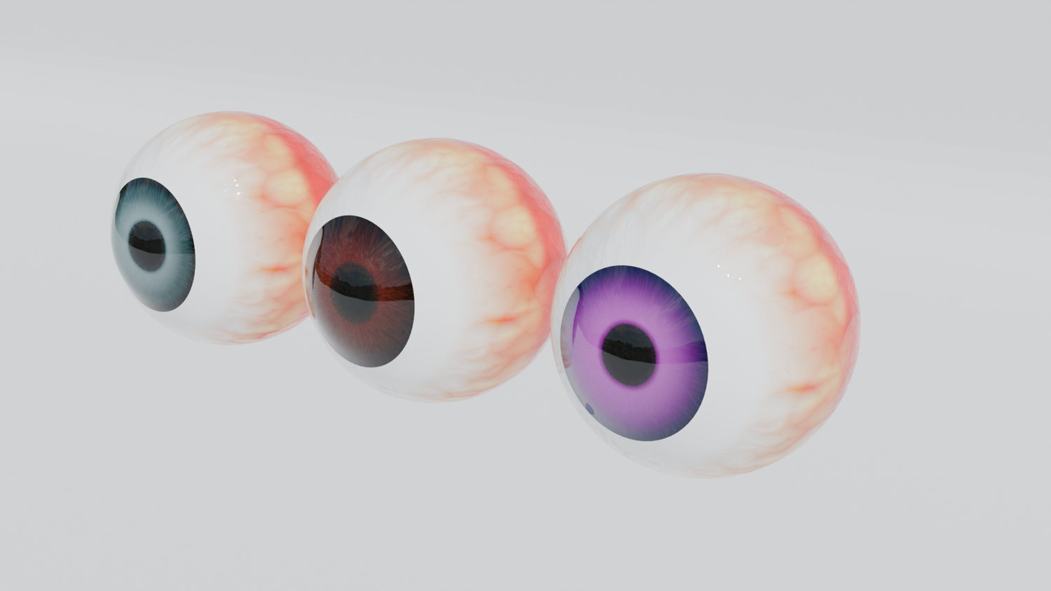 This package contains 6 eye models (3 color variations), each supplied with high-poly and low-poly geometry for flexible use across different pipelines.