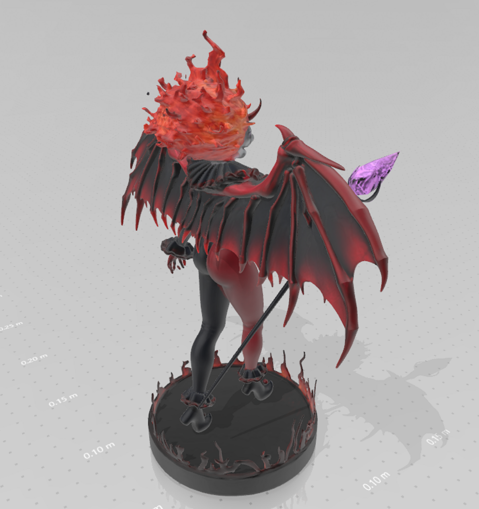 I made the figure very detailed, very precise and very original. The Dark Mistress stands on a circular black pedestal on the edges of which there are glowing flames that form a protective circle around herself. I particularly evoked its power and spookiness in my title Artwork, where I presented my sculpture through a strong artistic composition. In reality, the figure looks powerful and becomes a clearly visible detail and addition to a good interior. The height of this incredible figure is 21cm.