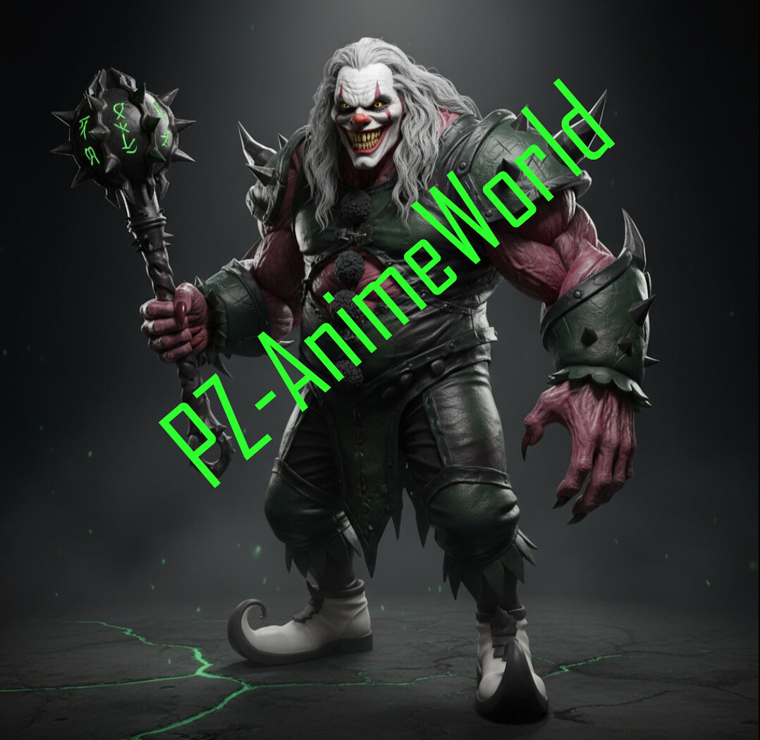 The evil silver haired clown is part of a group that I created. Each member represents one domain of evil, with a specific magical weapon. The highest in the hierarchy represents a high domain of magic, while those lower in the hierarchy, like this one, have more physical abilities. Each member represents a part of the Evil Seven. Each member of the team has a very distinctive design that has not been seen before. Height of this figure is 21cm. Along with a precise 3d figure, you also get a 2d artwork without a watermark, and with hand-signed by the Creator.