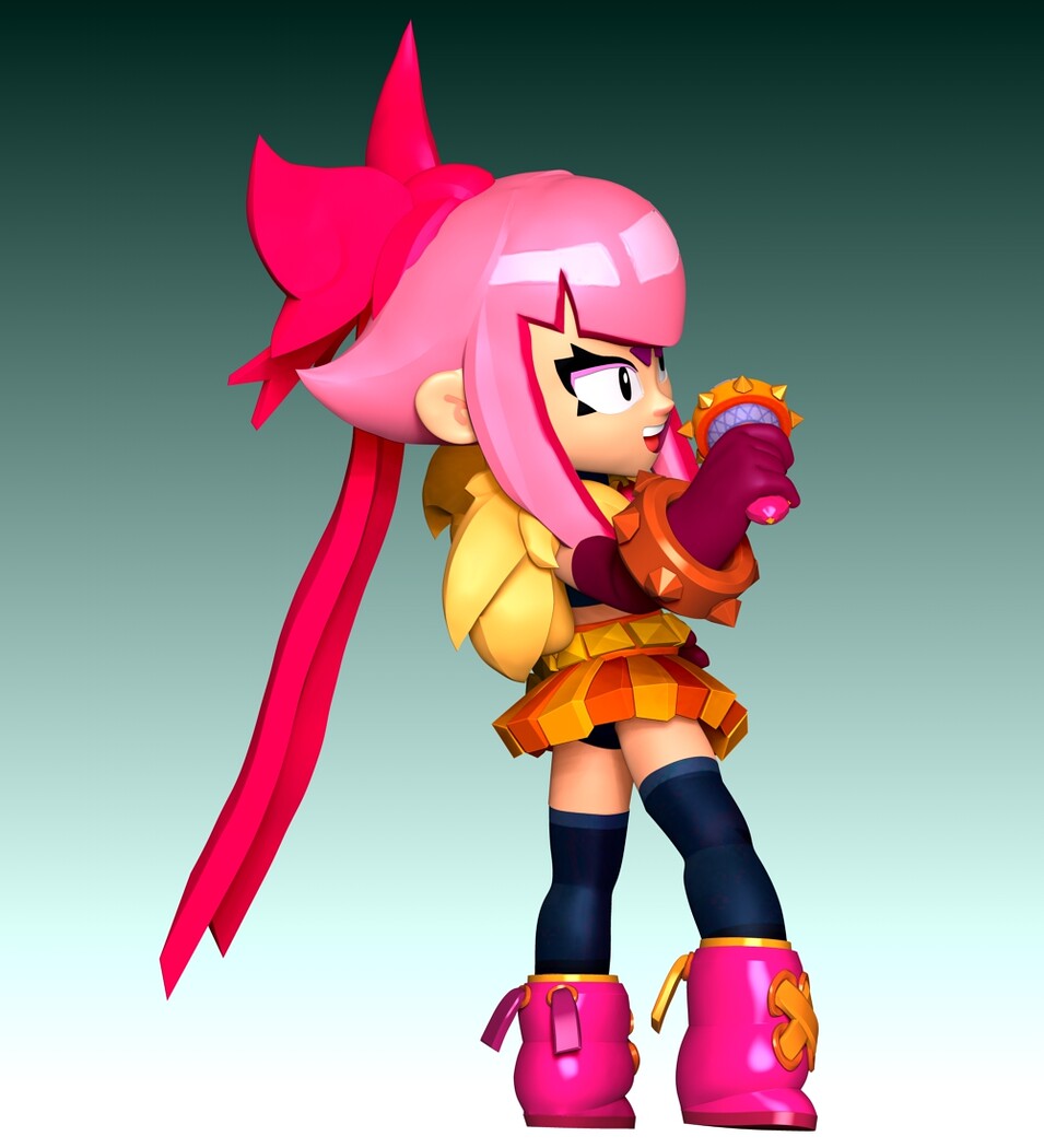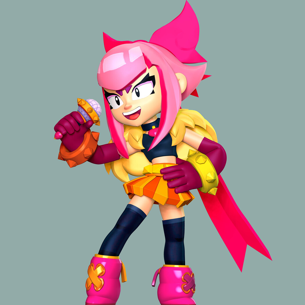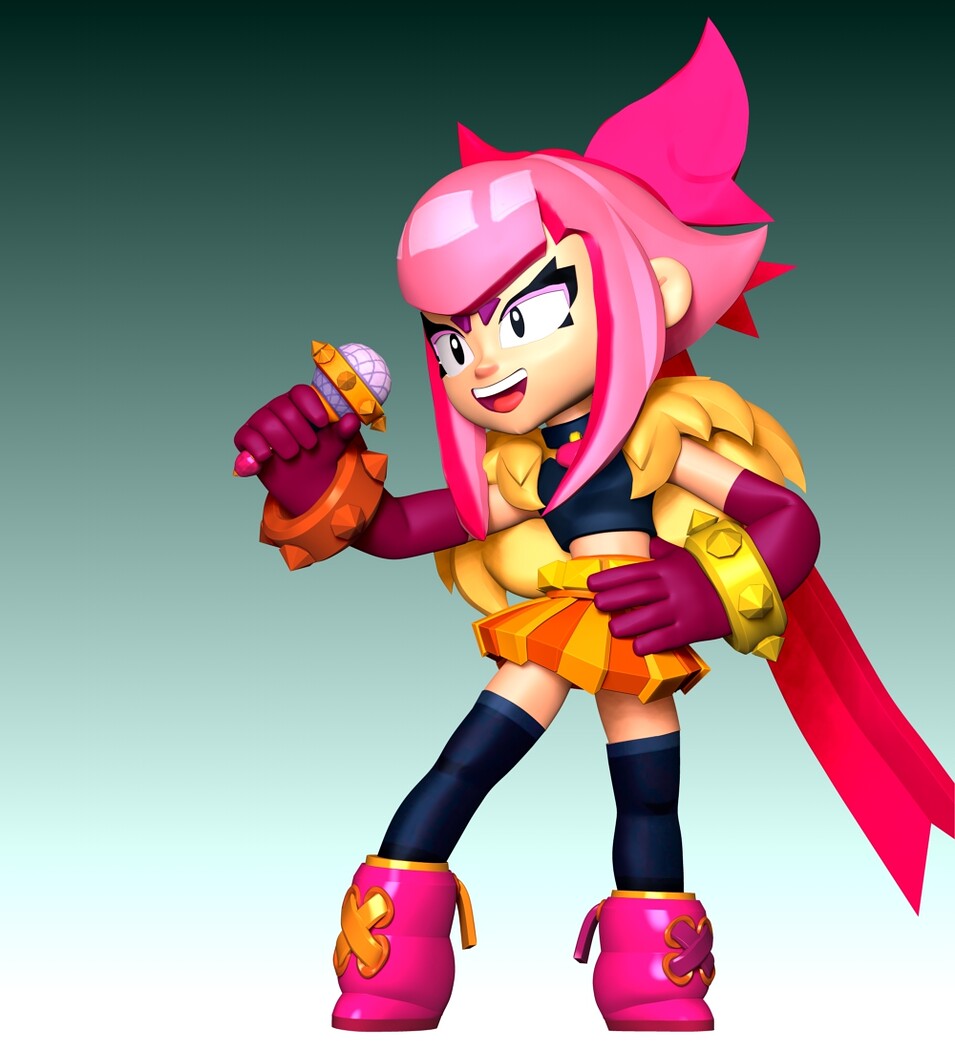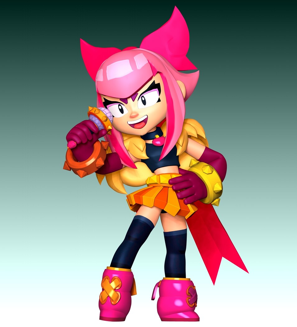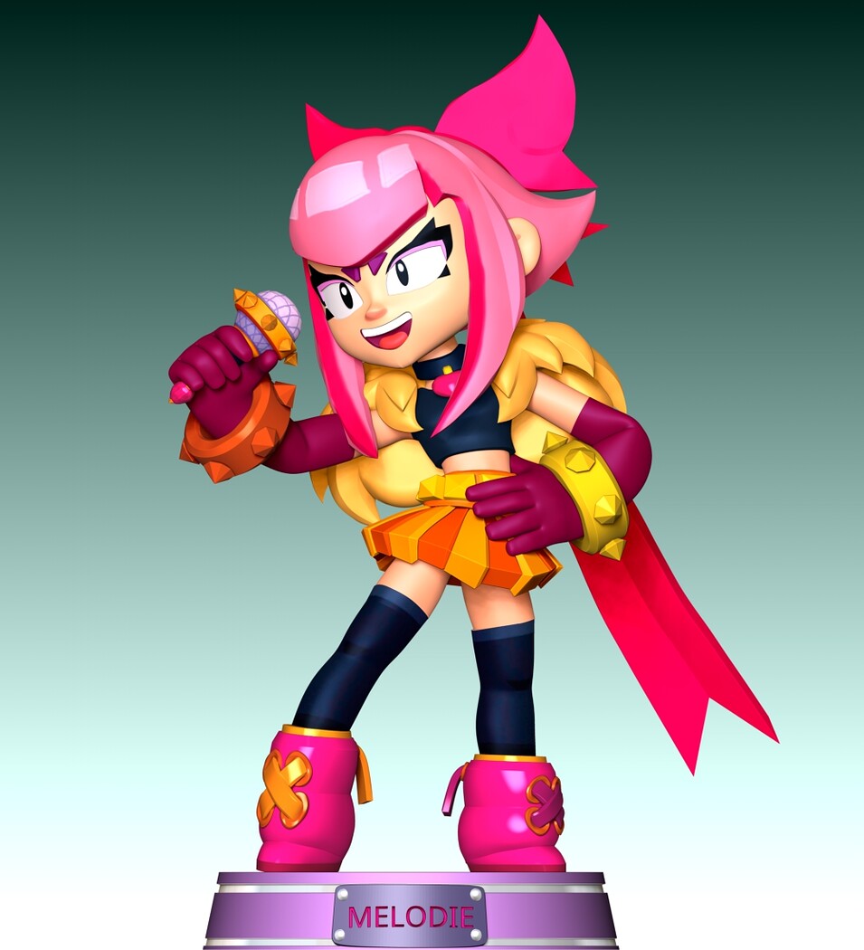 Melodie is a Mythic Brawler who has a long range, moderate health, and a high damage potential. Her attack is a long-ranged monster note that deals very low damage
