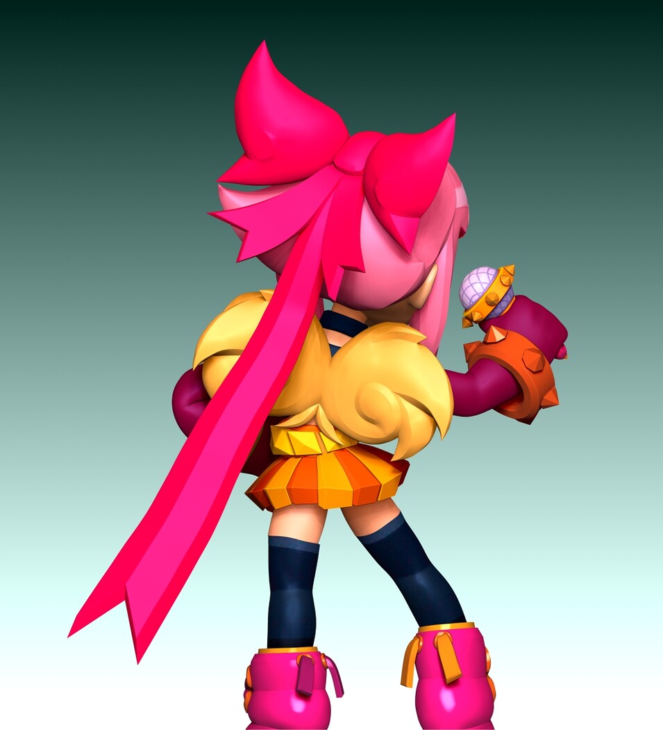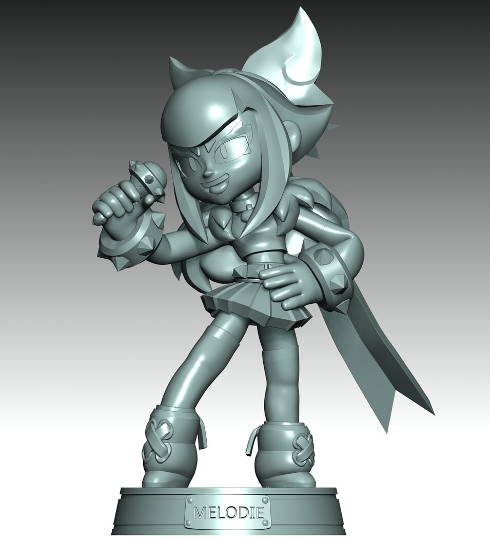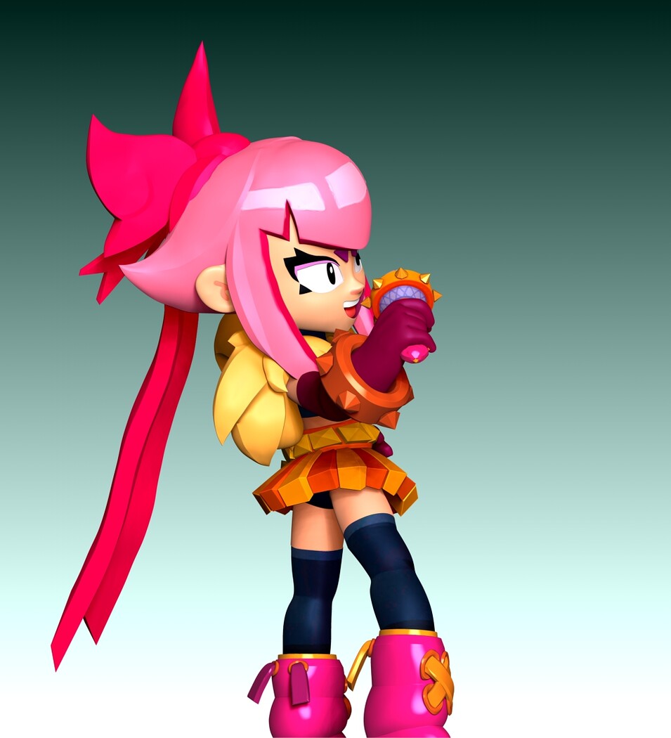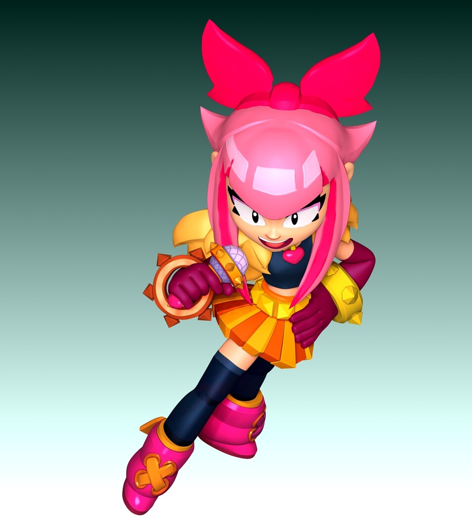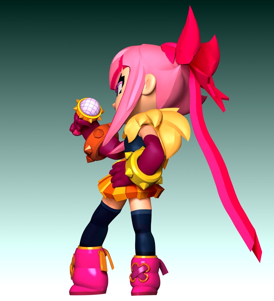 Melodie is a Mythic Brawler who has a long range, moderate health, and a high damage potential. Her attack is a long-ranged monster note that deals very low damage
