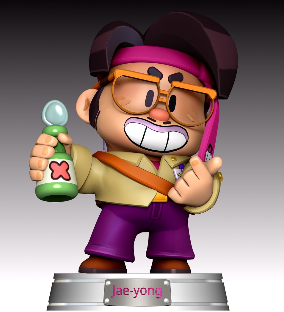 Jae-yong is a Mythic Brawler who has moderate health, a long range, a variable damage output, a fast movement speed, and the ability to transform into multiple different modes through his Super and Gadgets
