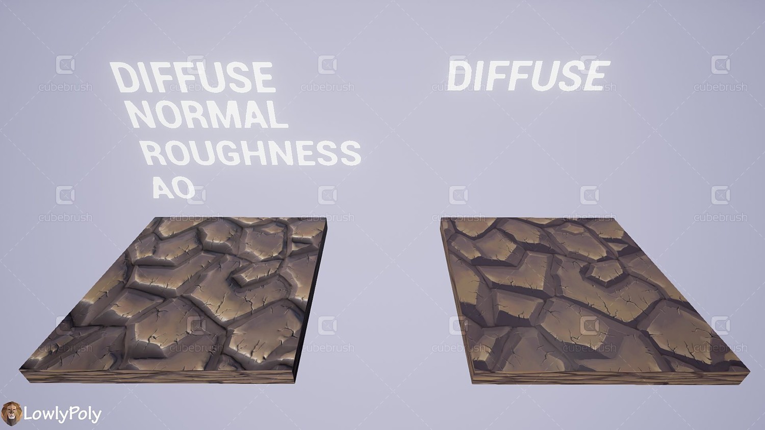 - Base Color / Normal / Roughness / Height / Ambient Occlusion included