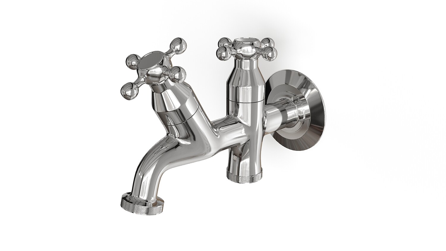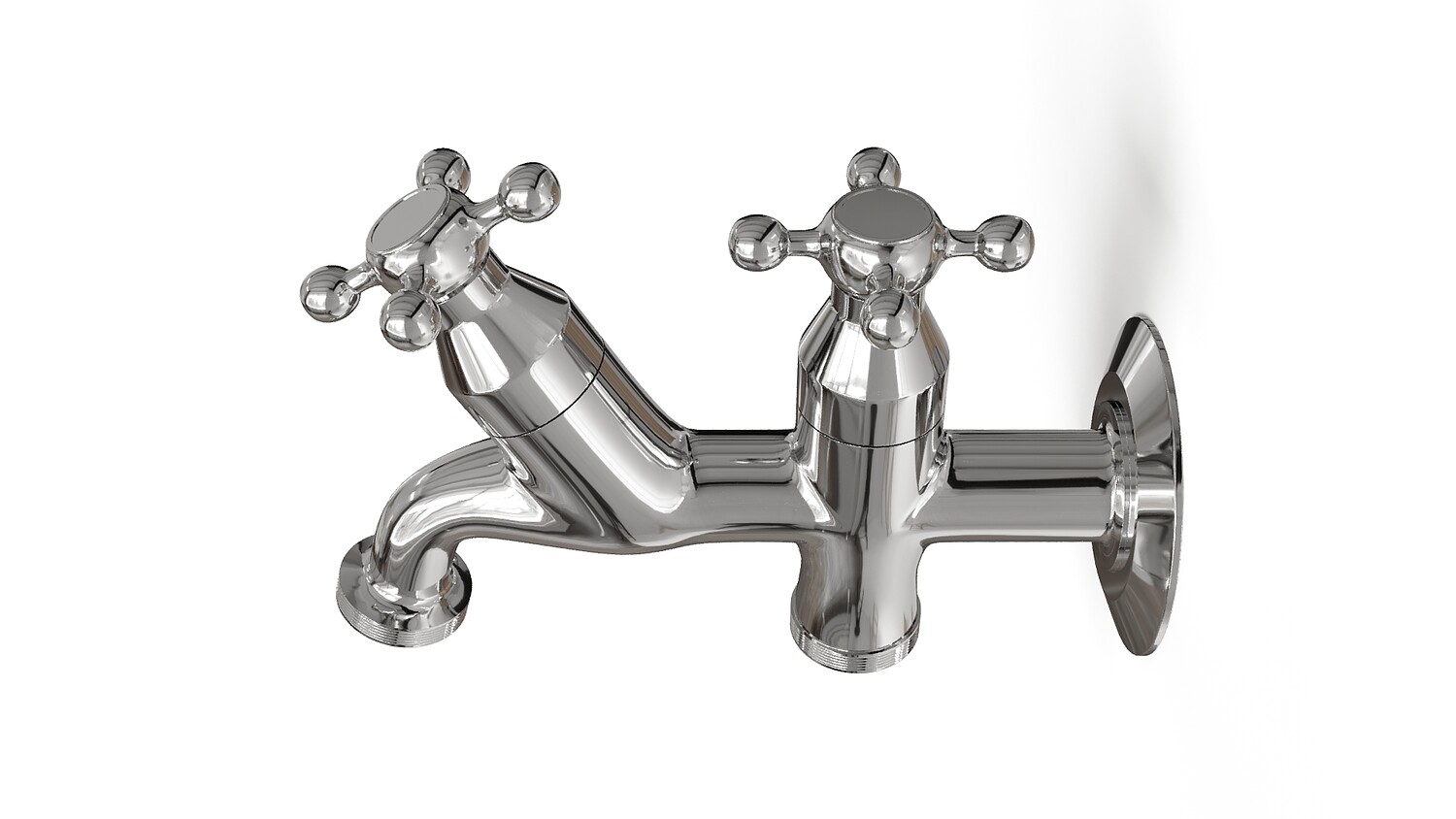 Classic Double Outlet Chrome Wall Tap with Cross Handles
