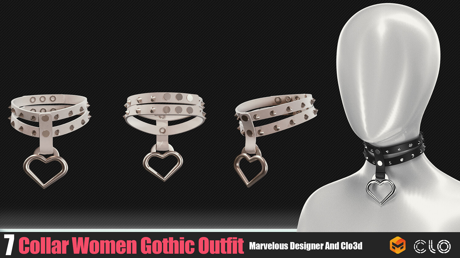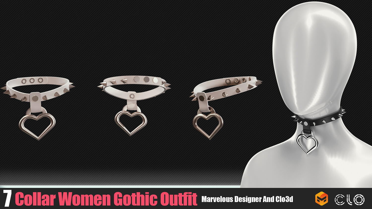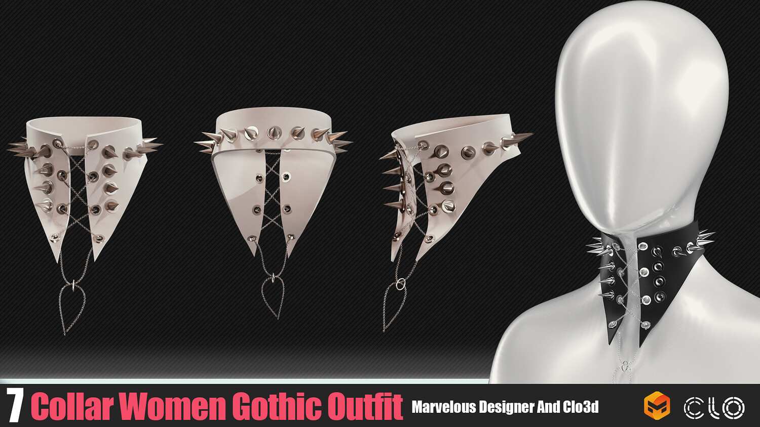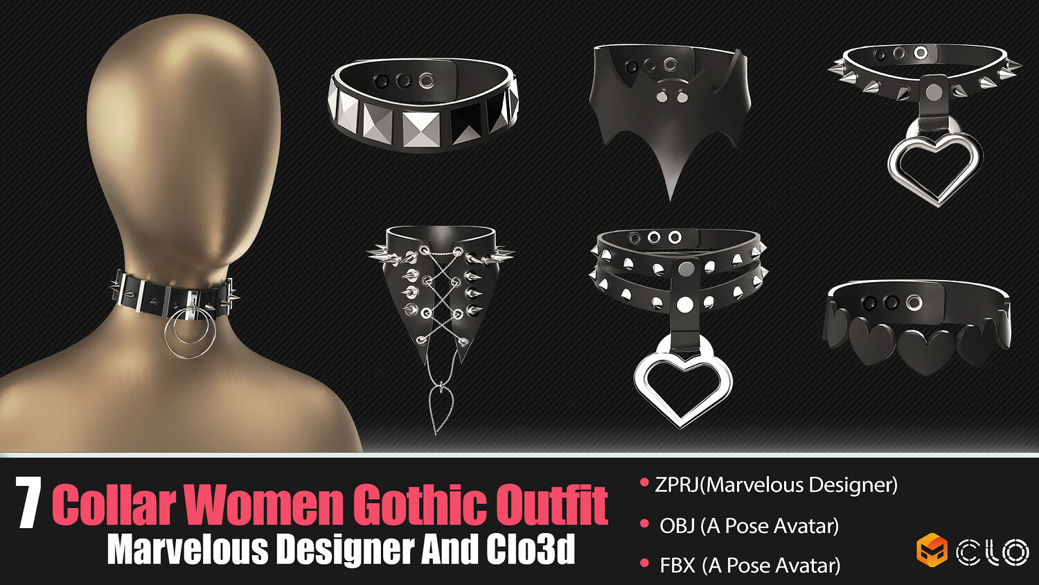 7 Collars Women Gothic Outfits (CLO3D, MD PROJECTS+OBJ+FBX) Vol 01