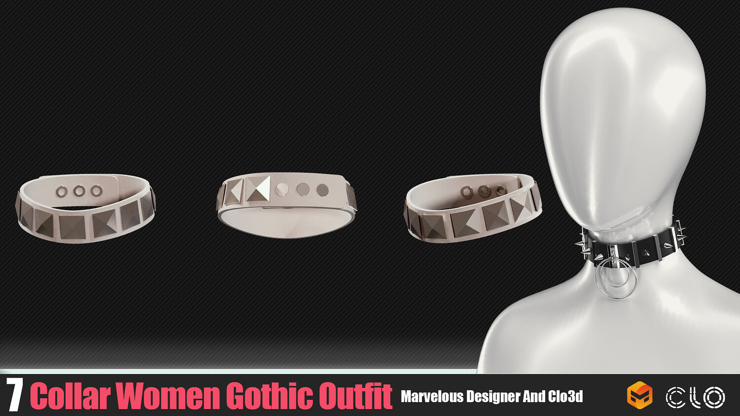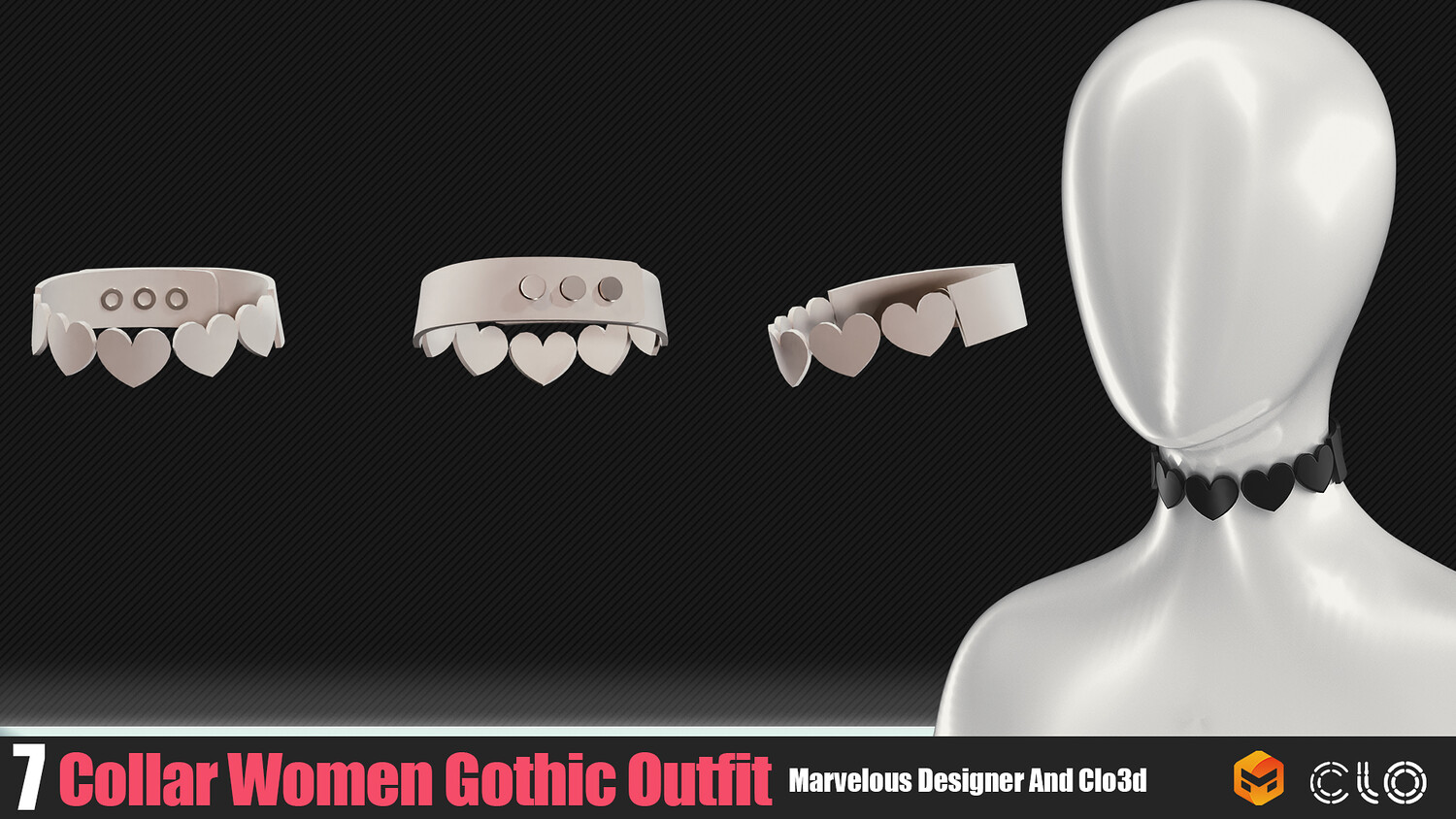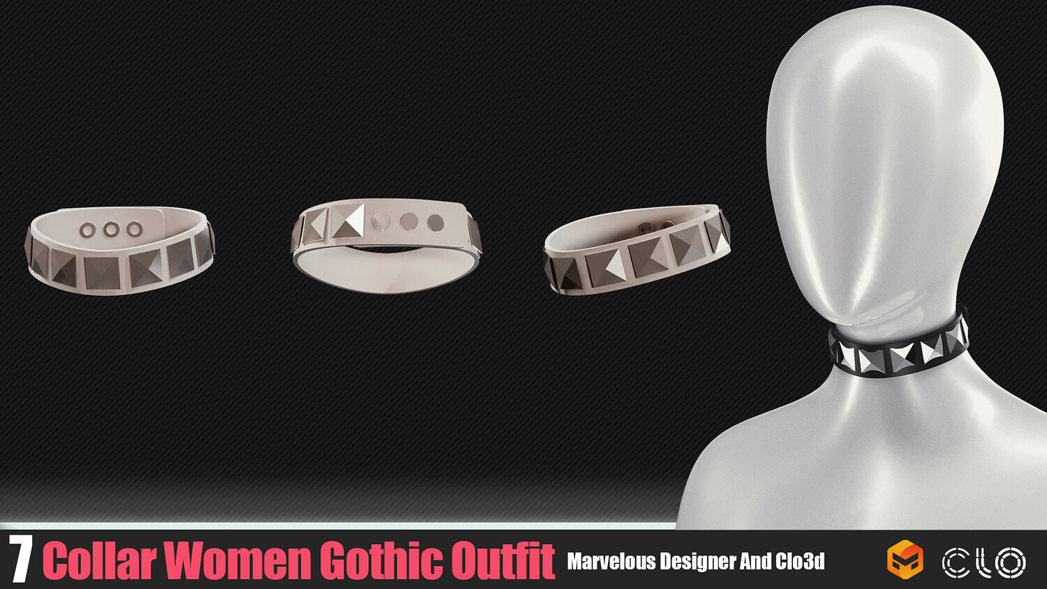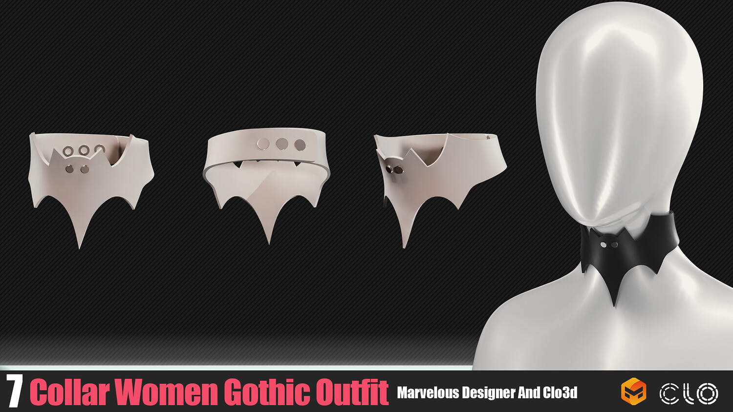 7 Collars Women Gothic Outfits (CLO3D, MD PROJECTS+OBJ+FBX) Vol 01
