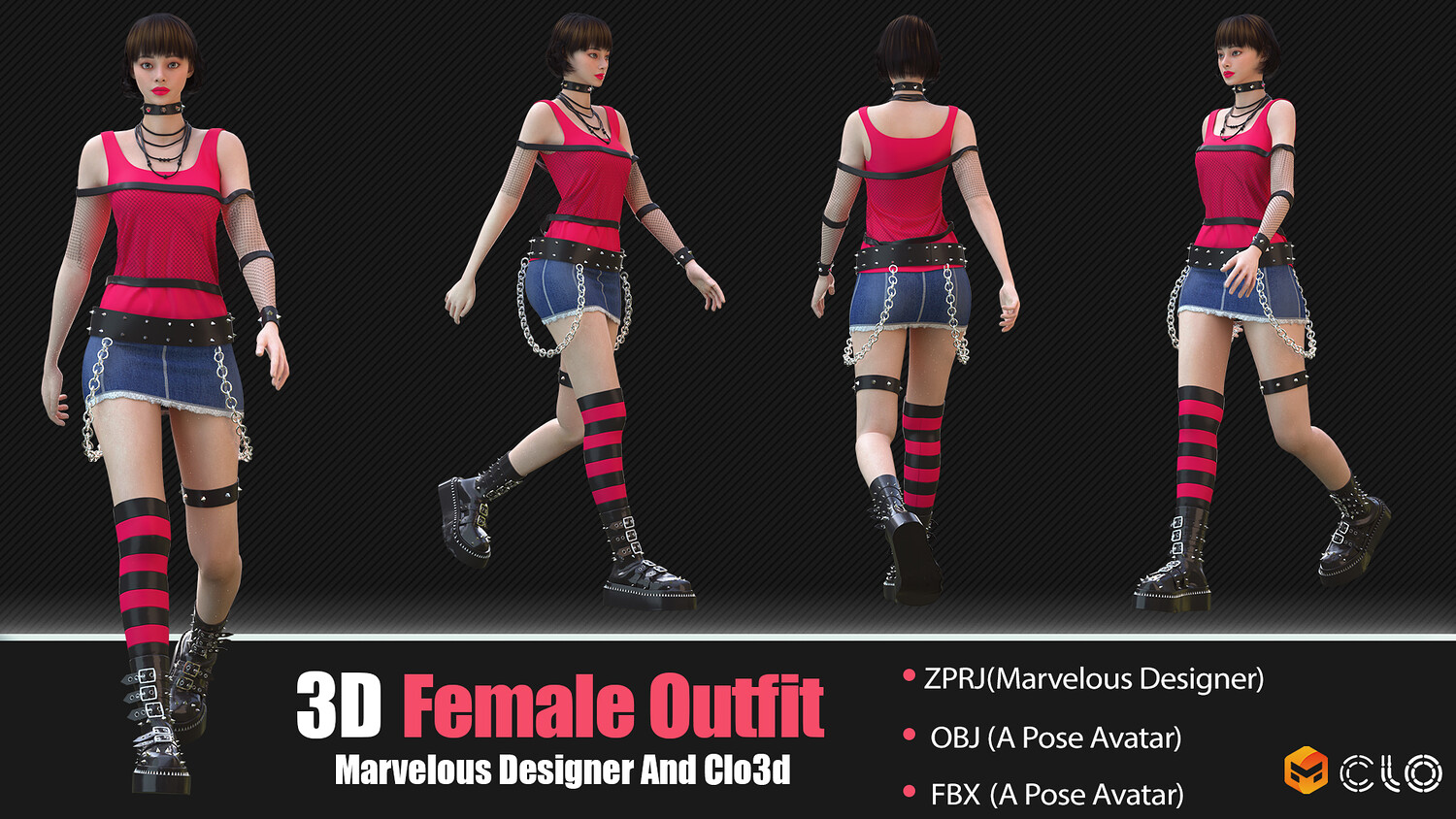 3D Women Outfit (CLO3D, MD PROJECTS+OBJ+FBX)