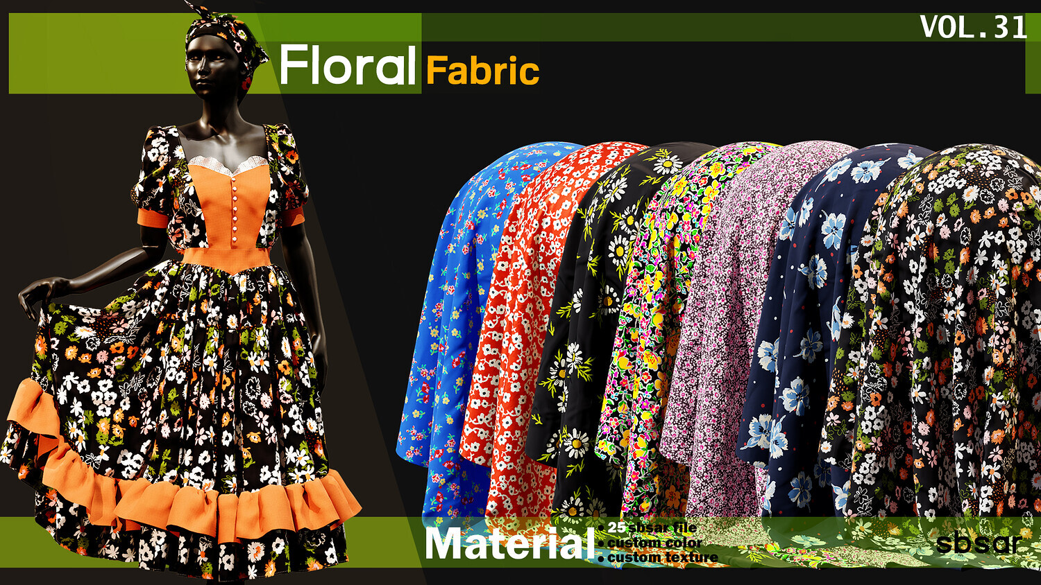 floral fabric Material -SBSAR -custom fabric -VOL 31