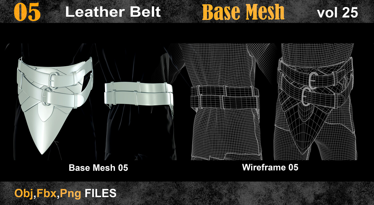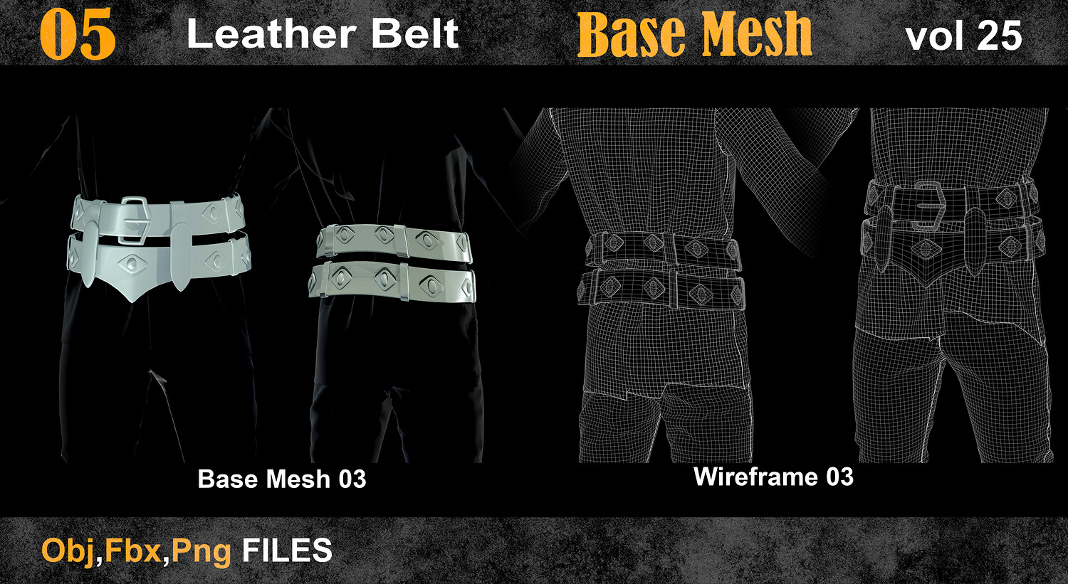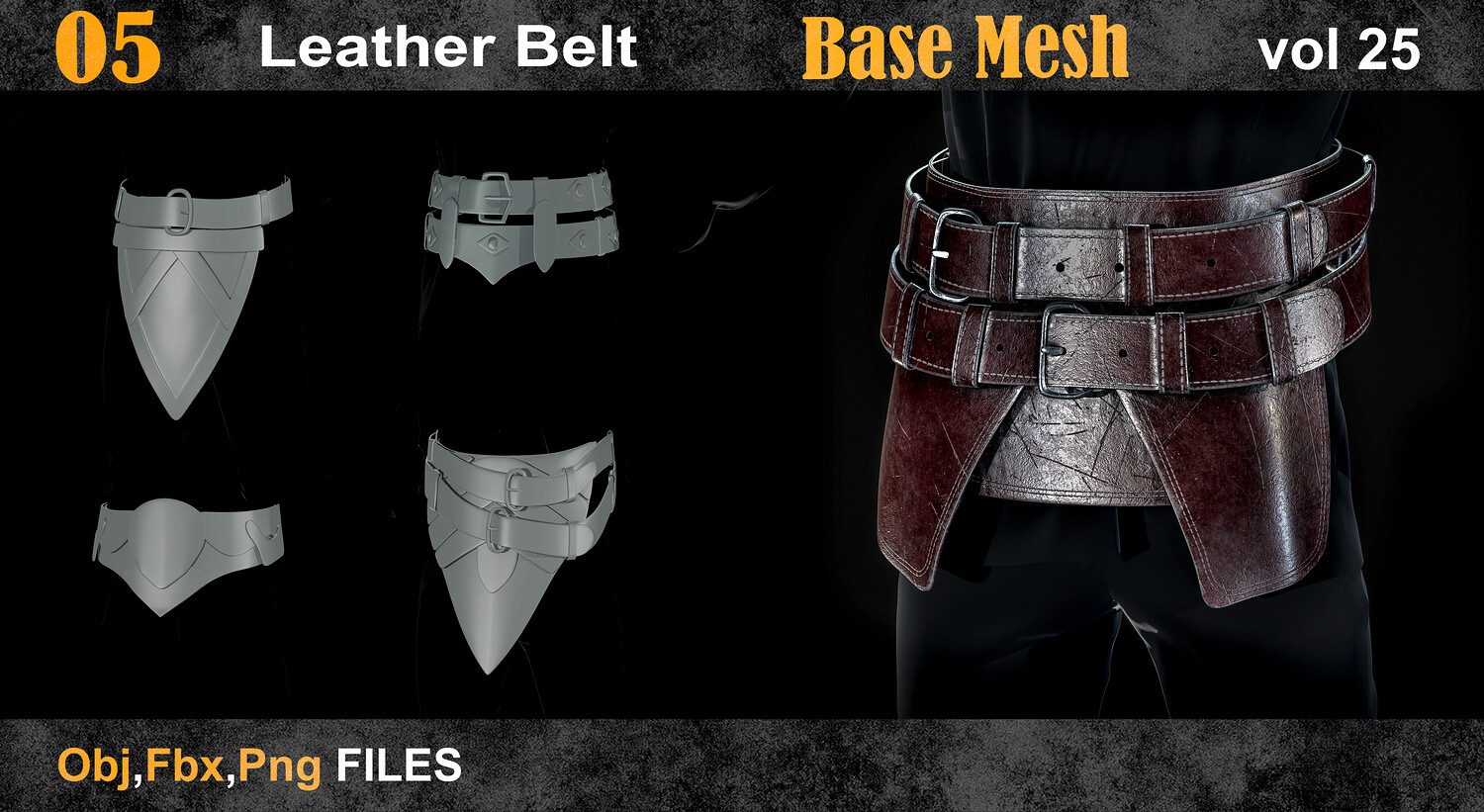 5 Leather Belt Models – Base Mesh (Vol-25)