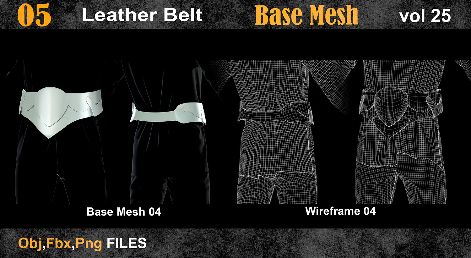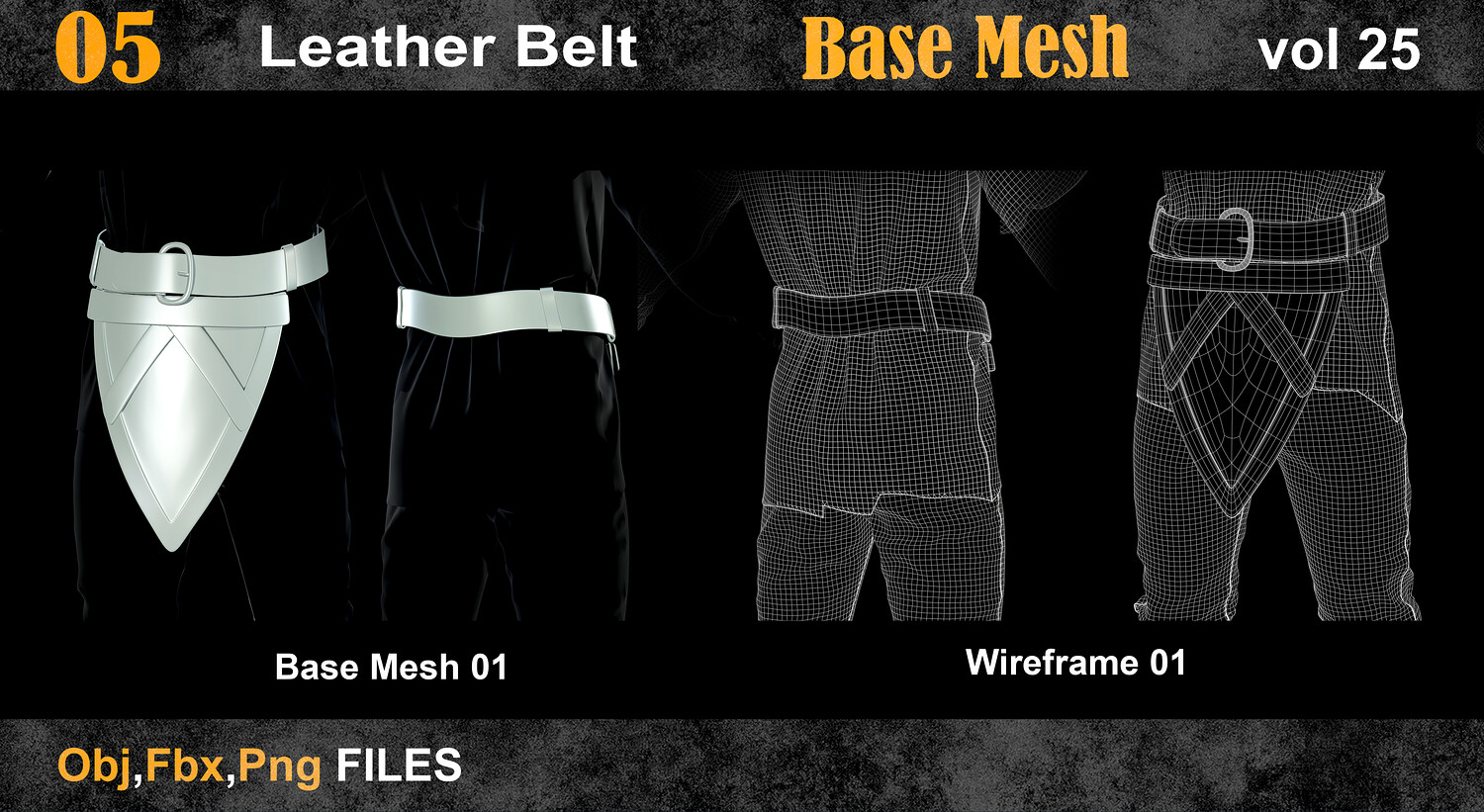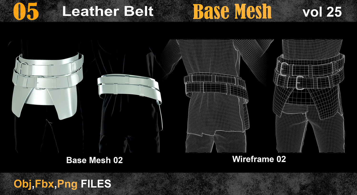 5 Leather Belt Models – Base Mesh (Vol-25)