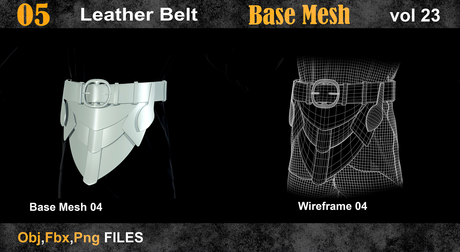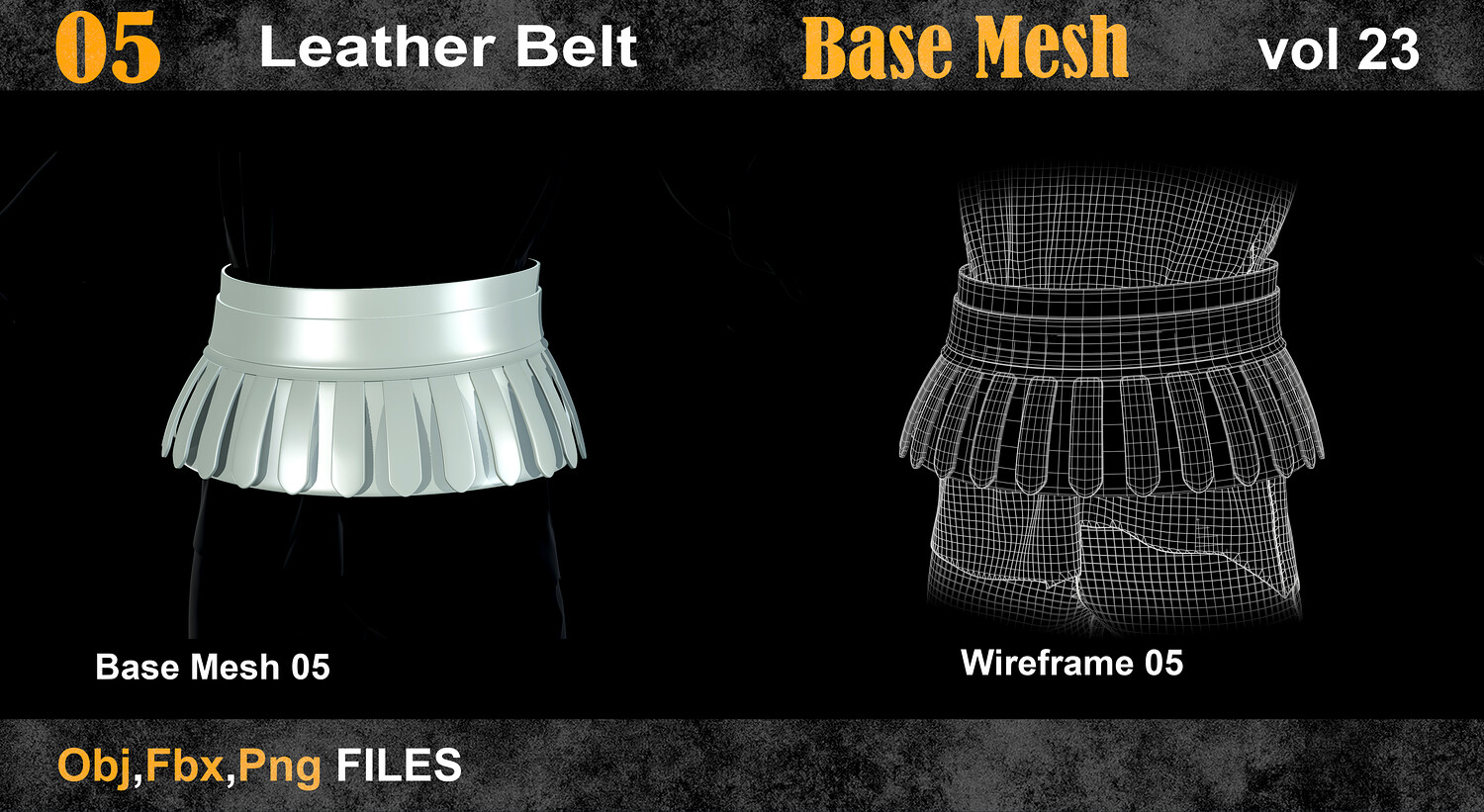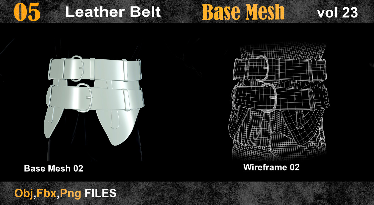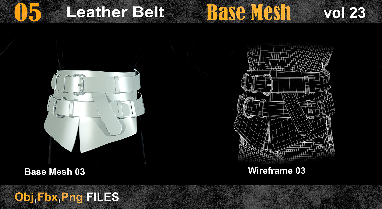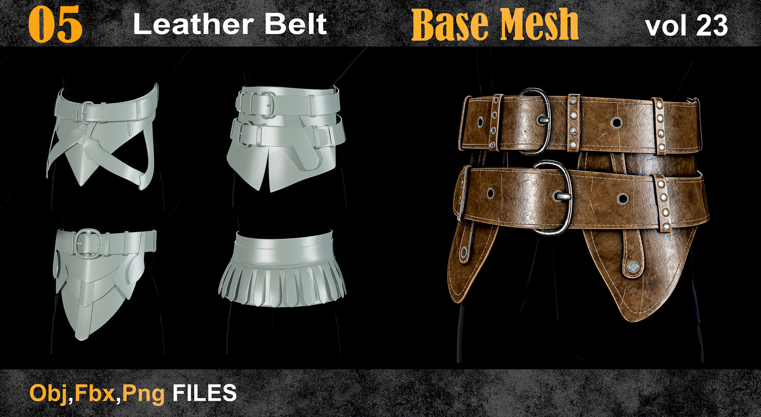 5 Leather Belt Models – Base Mesh (Vol-23)