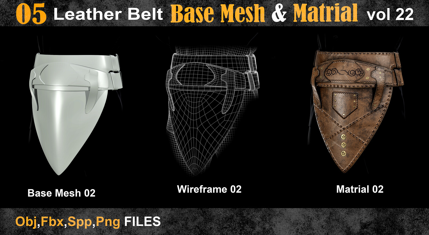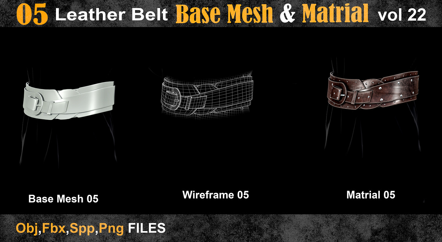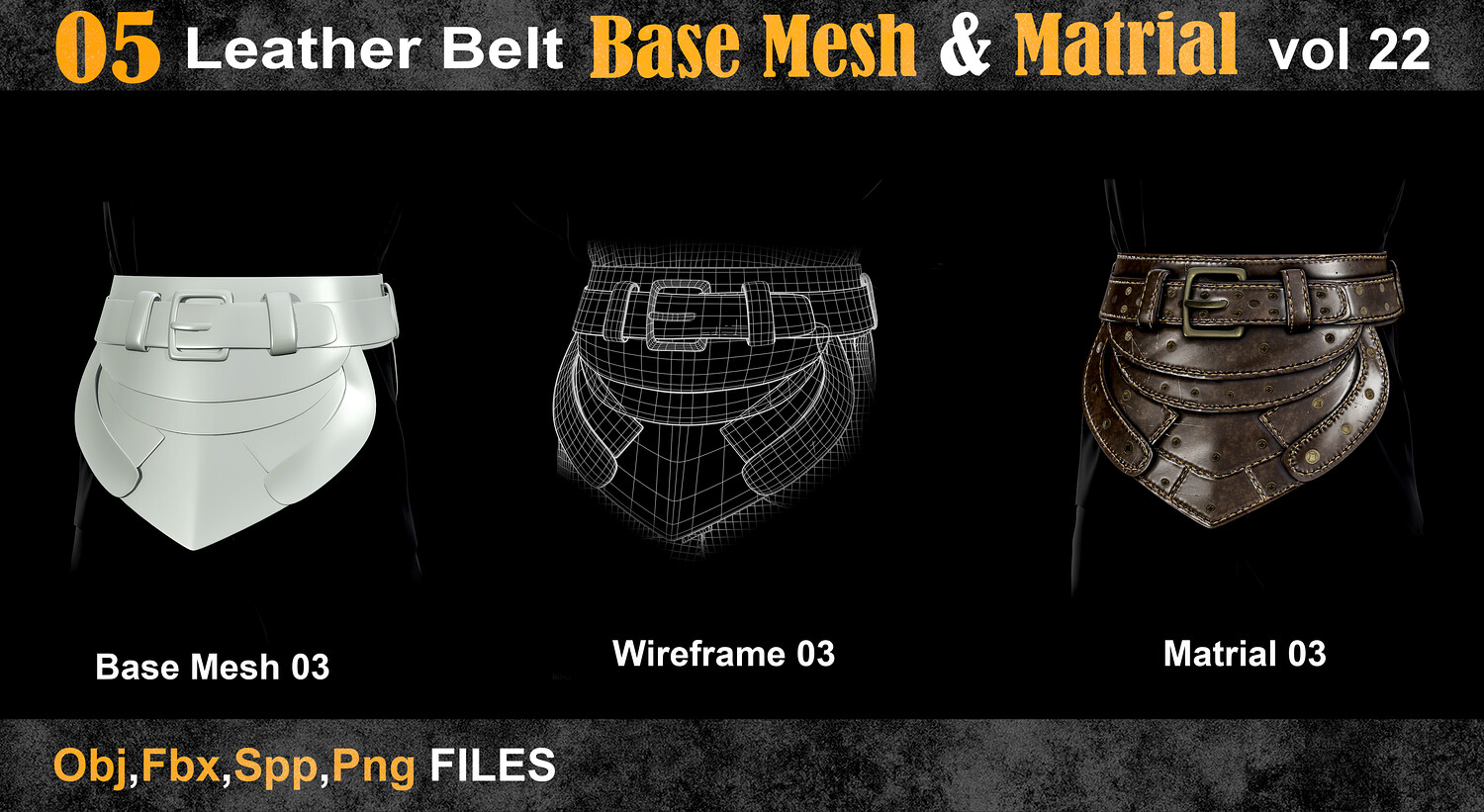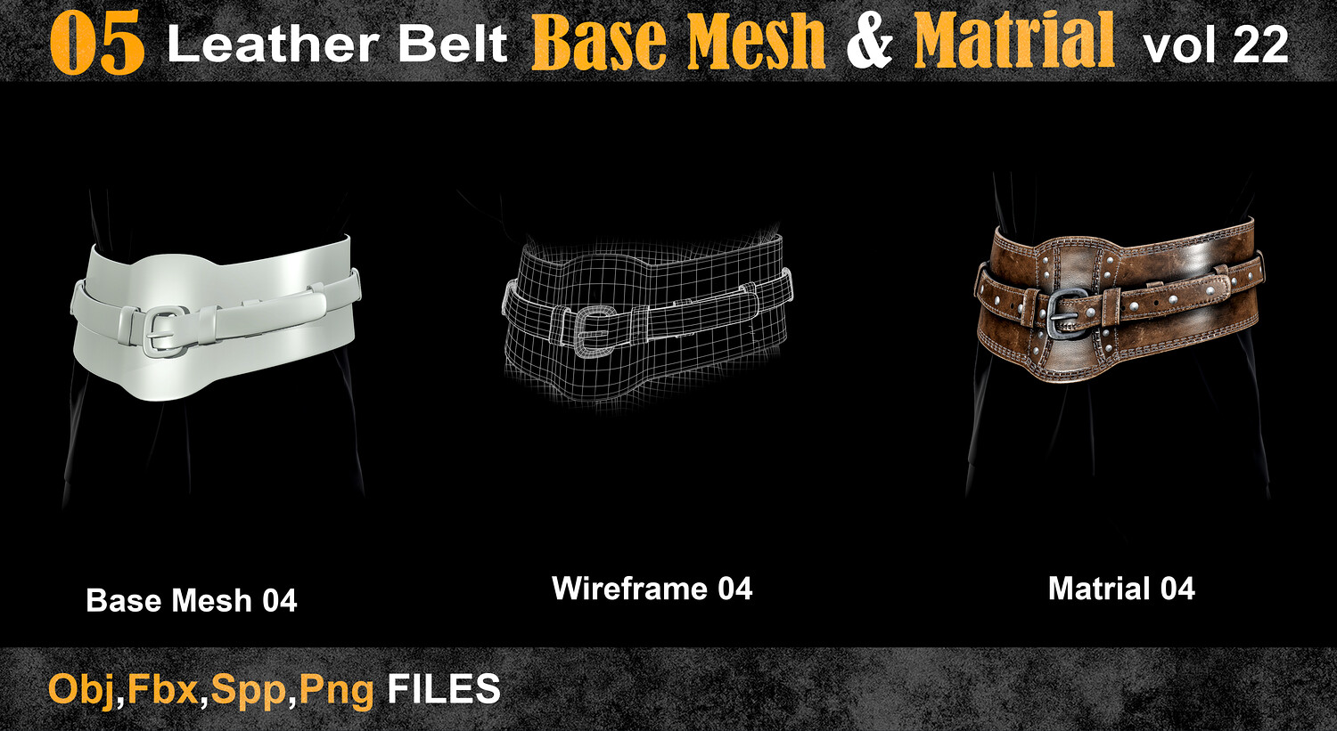 5 Leather Belt Models – Base Mesh + Materials + Substance Source (Vol-22)