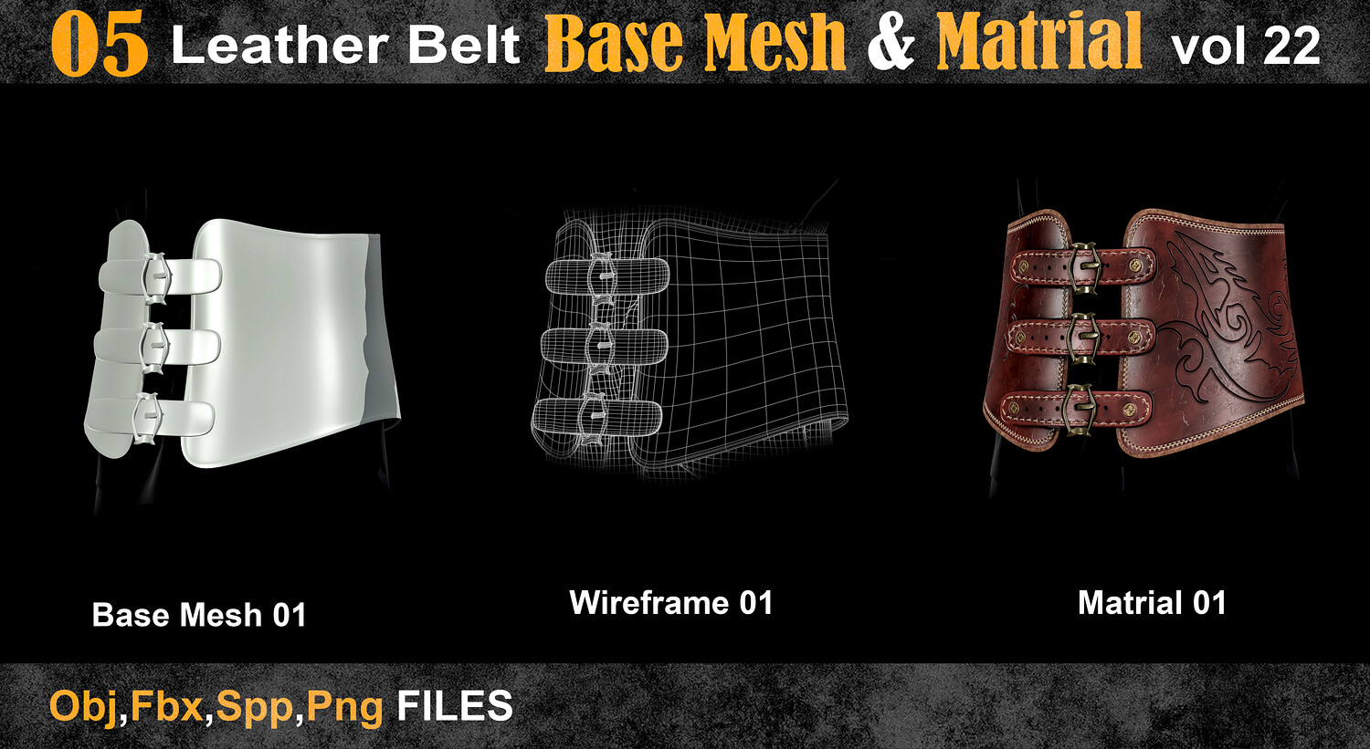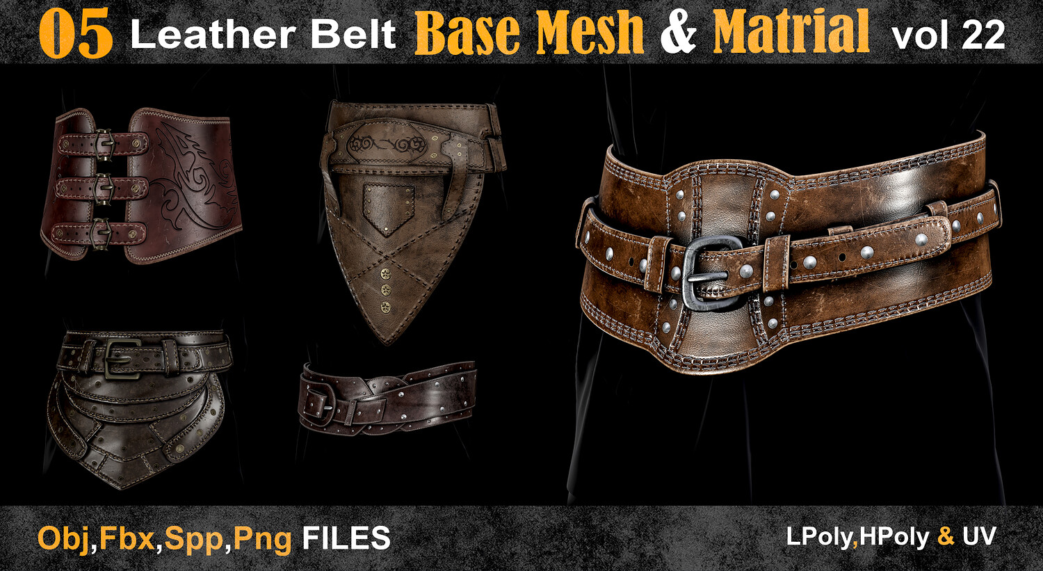 5 Leather Belt Models – Base Mesh + Materials + Substance Source(Vol. 22)
