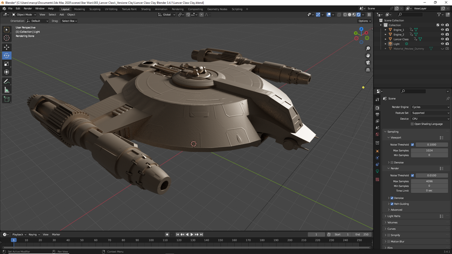 Lanzer Class Clay Spaceship Vray