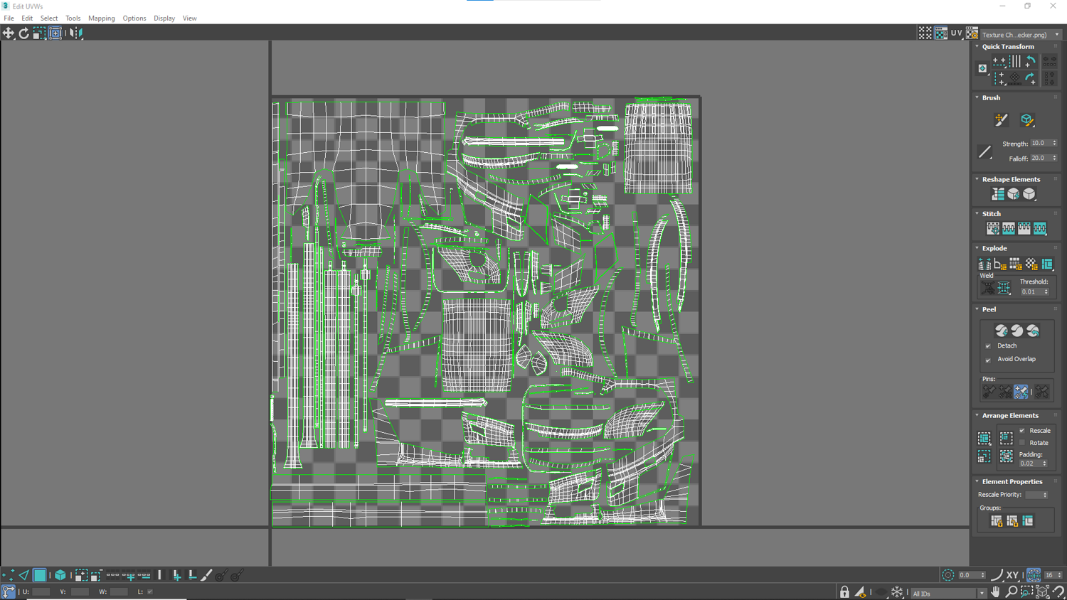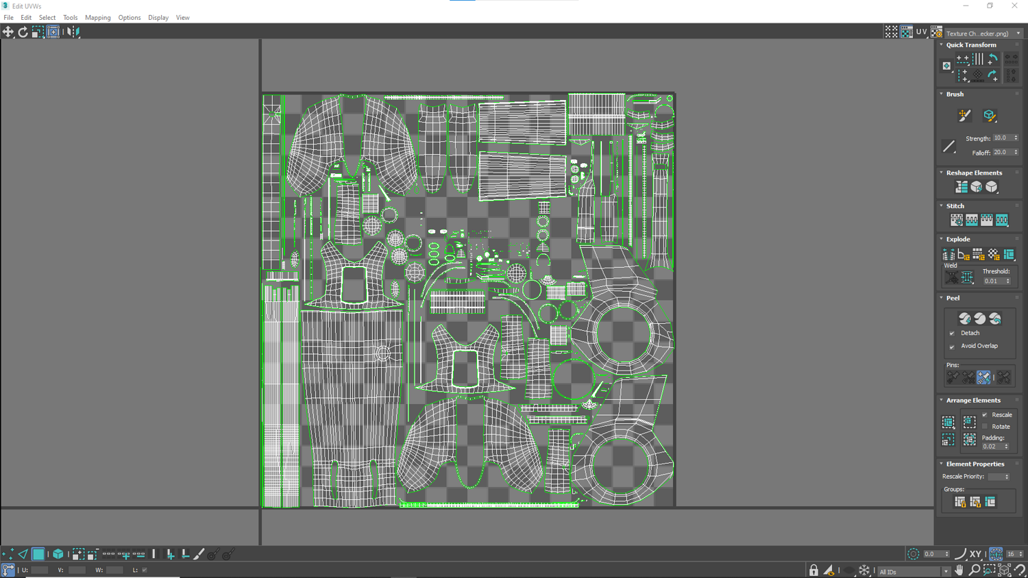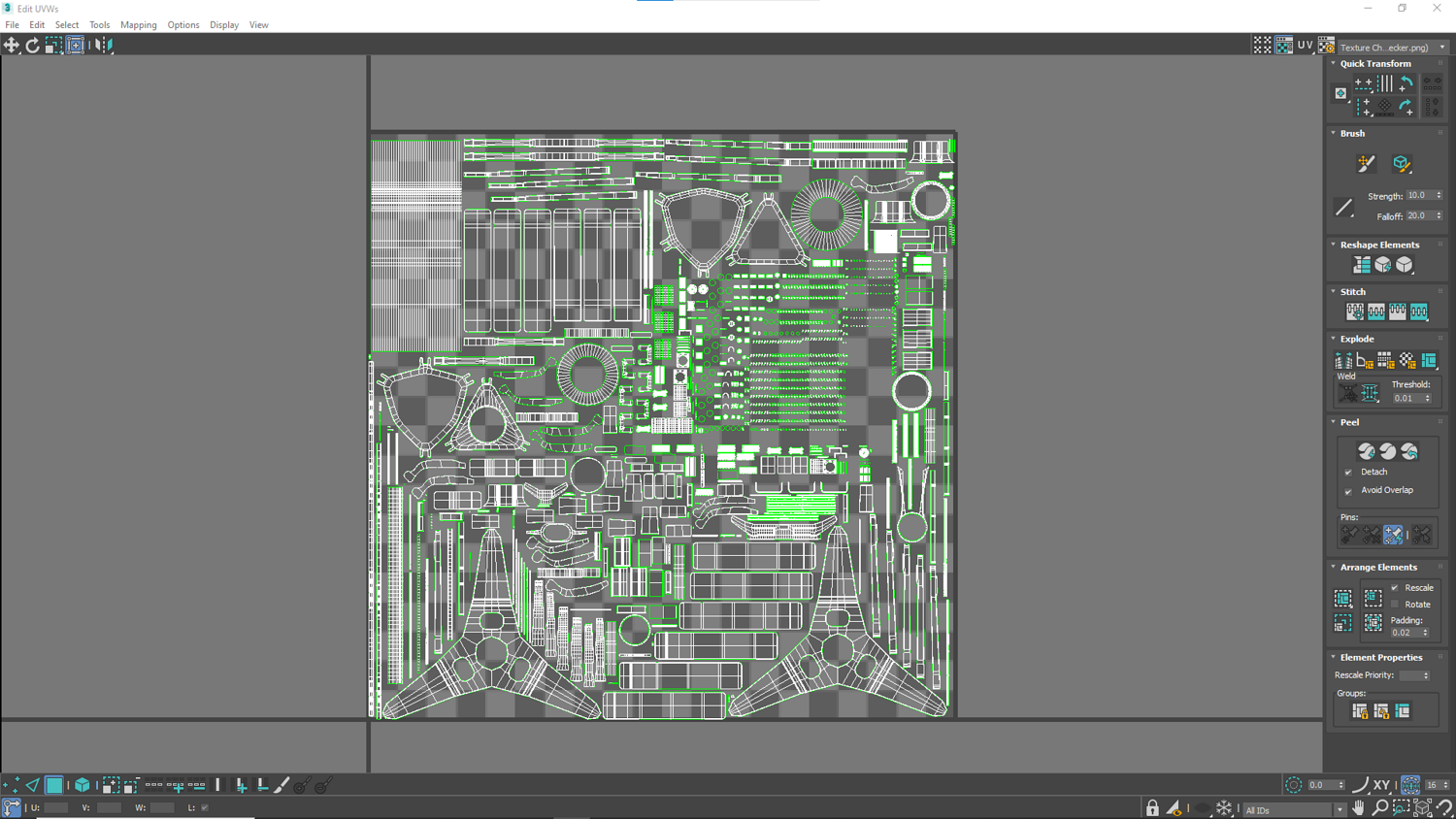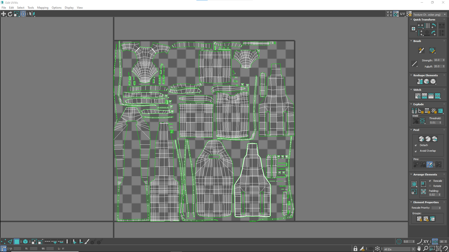 6_The 3d model use Turbosmooth Interations set to 2 Iterations, the modifier is an instance, just set one to reflect the changes on all parts that use the modifier.