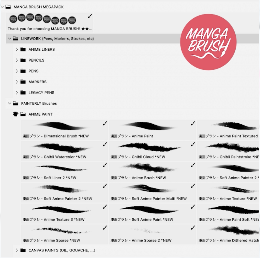 MANGA and ANIME Ultimate Brushes MEGAPACK 2026 - 3000+ Brushes for Procreate CSP, and Photoshop!