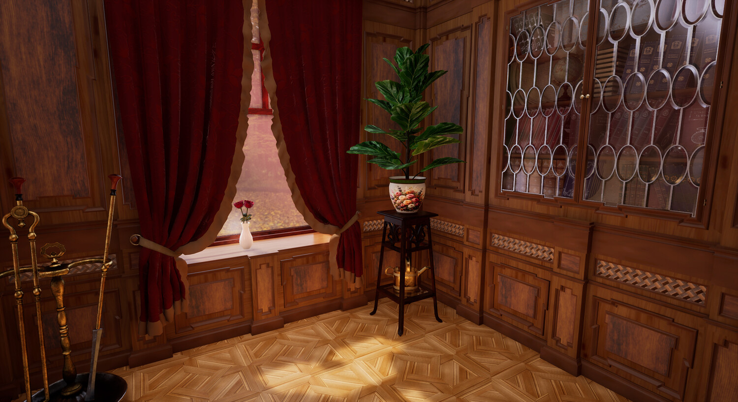 The room is a richly detailed Victorian living room interior, designed to evoke warmth, elegance, and quiet sophistication. This scene brings together a curated selection of previously crafted furniture and decor elements, forming a complete, immersive environment suitable for late 19th-century settings.