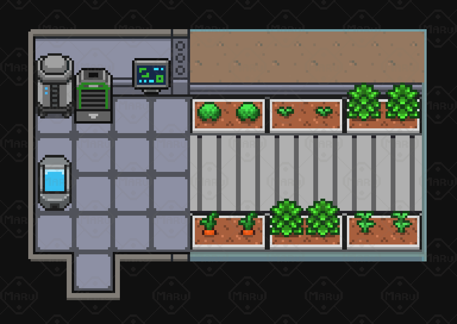 This module includes a detailed greenhouse structure ideal for food production, oxygen generation, research facilities, and colony expansion. Clean, readable, and ready to integrate into any 2D engine.