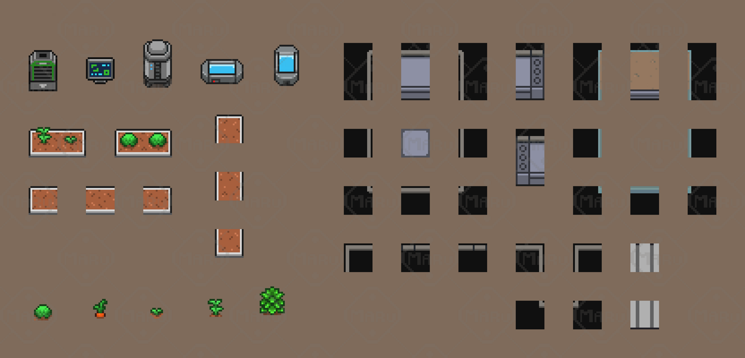 Features 16x16 pixel art structure Top‑down sci‑fi style Greenhouse module with transparent panels Ideal for Mars colonies, alien bases, and research outposts Perfect for survival, exploration, and management games Compatible with Unity, Godot, GameMaker, RPG Maker, and more