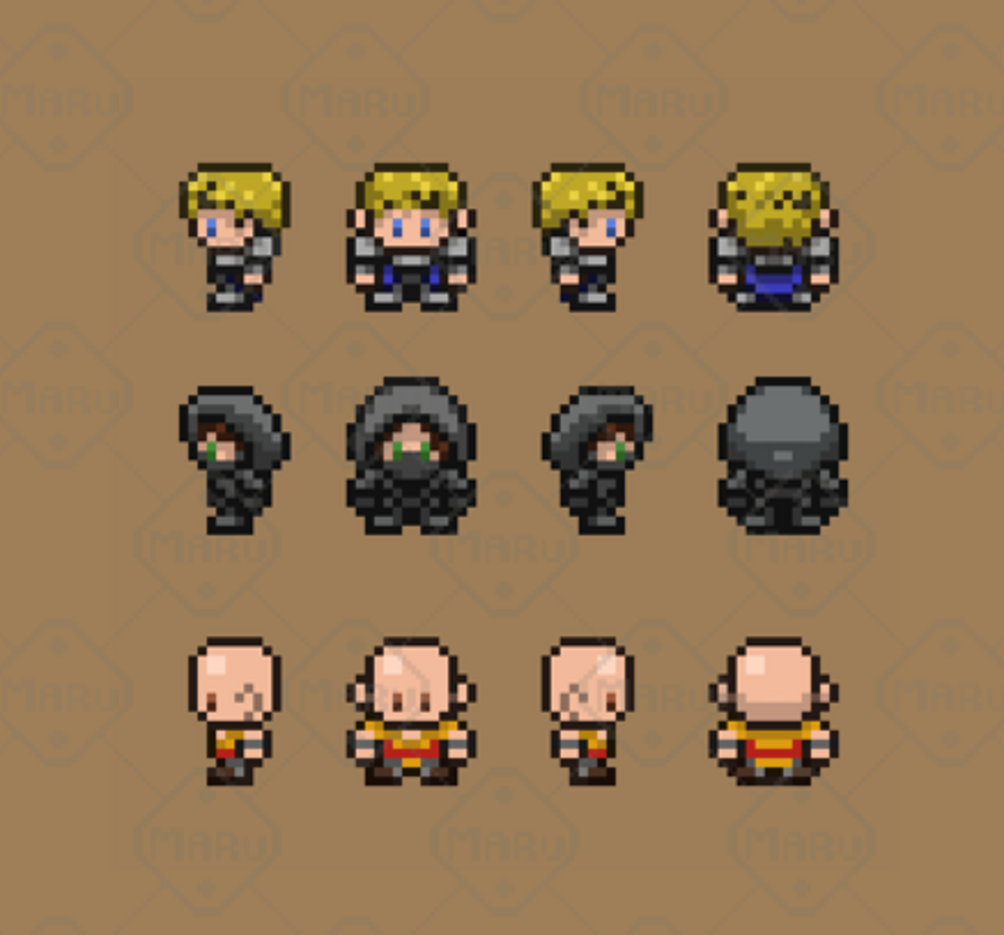 This Fantasy Classes Pack Vol.2 includes three fully animated 16x16 characters designed for top‑down RPGs, roguelikes, dungeon crawlers, and adventure games. The pack features a Paladin, an Assassin, and a Monk, each created with clean pixel art and smooth animations suitable for player characters, NPC