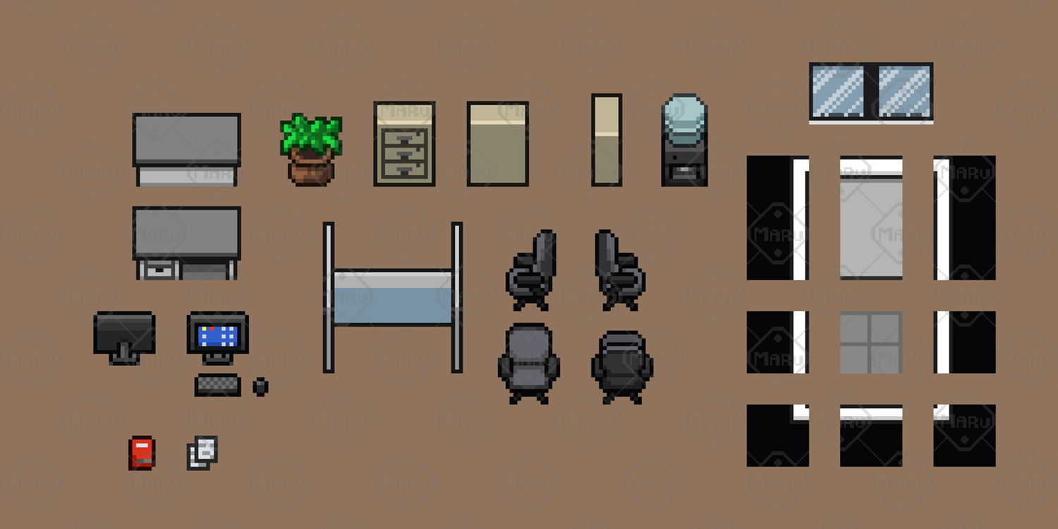 Features 16x16 top‑down pixel art Modular tiles for flexible room layouts Office and gaming props: desks, monitors, PCs, chairs, consoles Shelves, walls, floors, and decorative elements Clean, cohesive palette for professional results PNG format, ready to import
