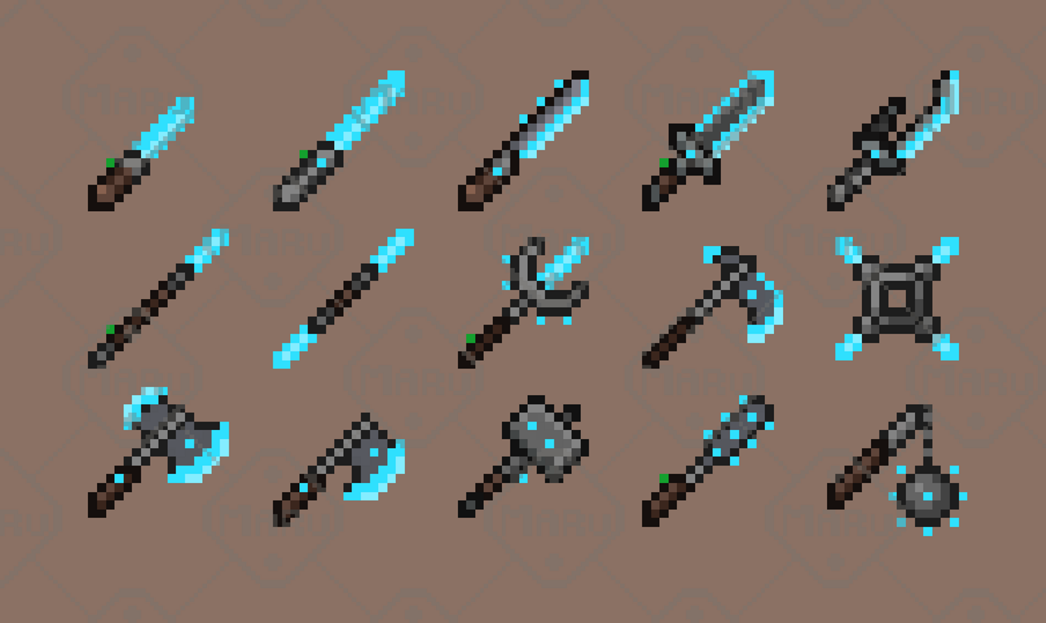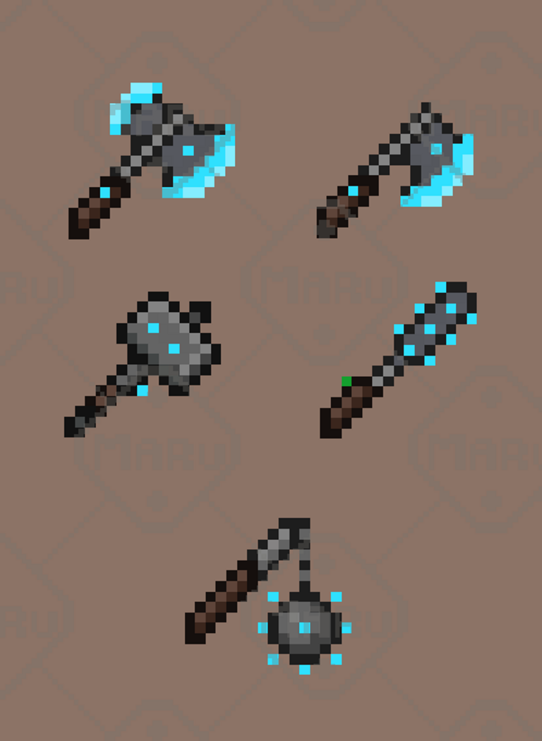 A collection of 16x16 sci‑fi melee weapons designed for pixel art games. Includes energy blades, plasma swords, combat knives, futuristic axes and special high‑tech melee tools. Perfect for RPG, roguelike, action, survival and sci‑fi adventure projects. Clean, readable pixel art optimized for small resolutions and easy integration in any engine, including Unity, Godot, GameMaker and custom frameworks. Ideal for indie developers, prototypes and commercial projects.